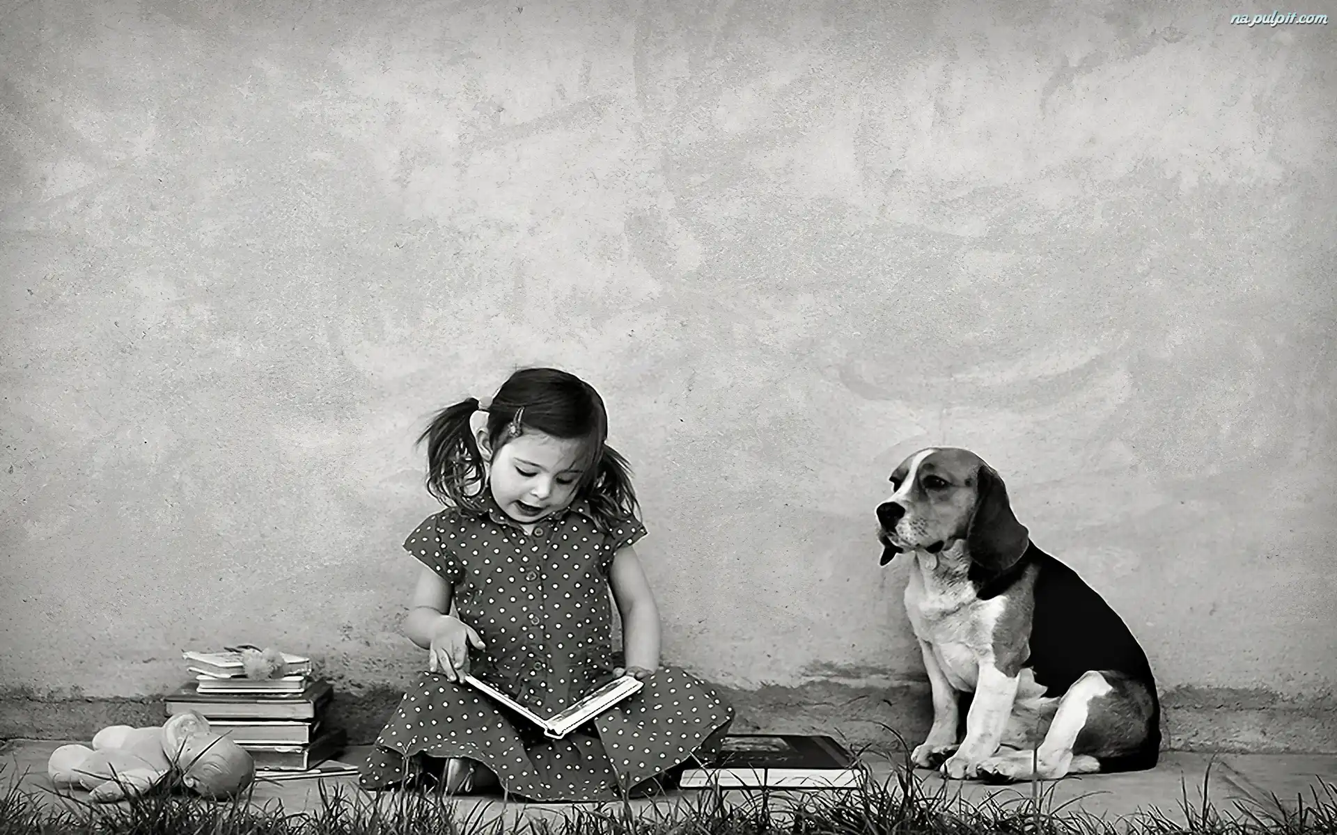 Beagle, Książki, Dziewczynka, Pies