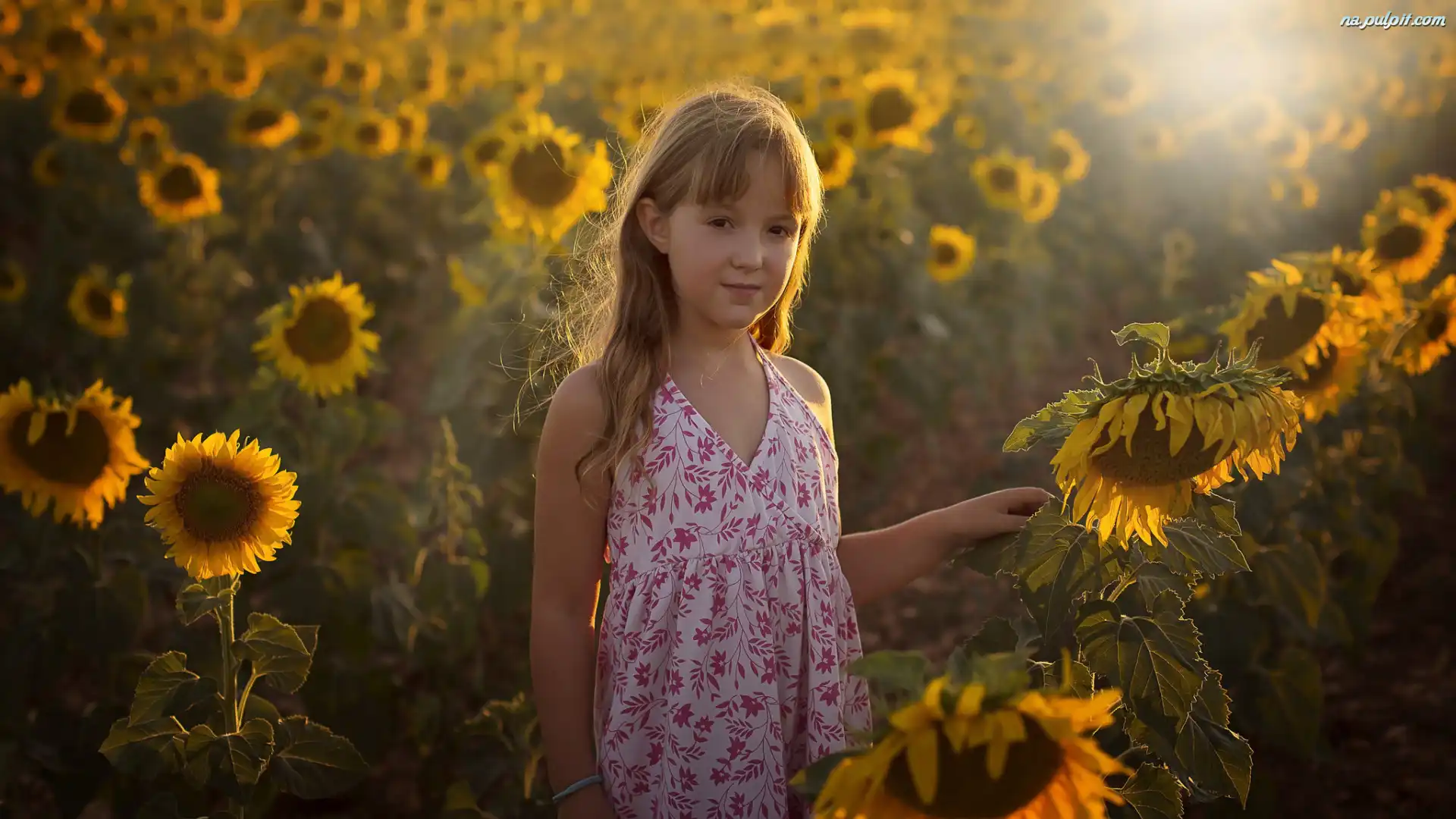 Pole, Dziewczynka, Słoneczniki Na Pulpit