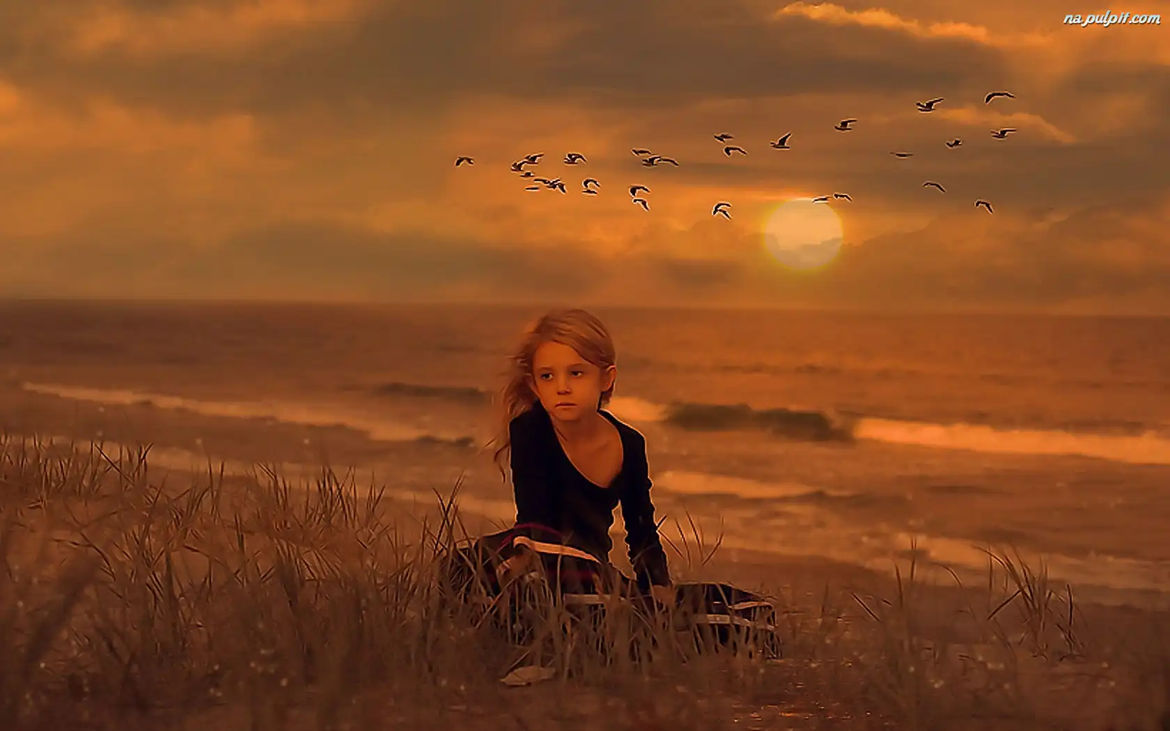 Ptaki, Dziewczynka, Plaża Na Pulpit
