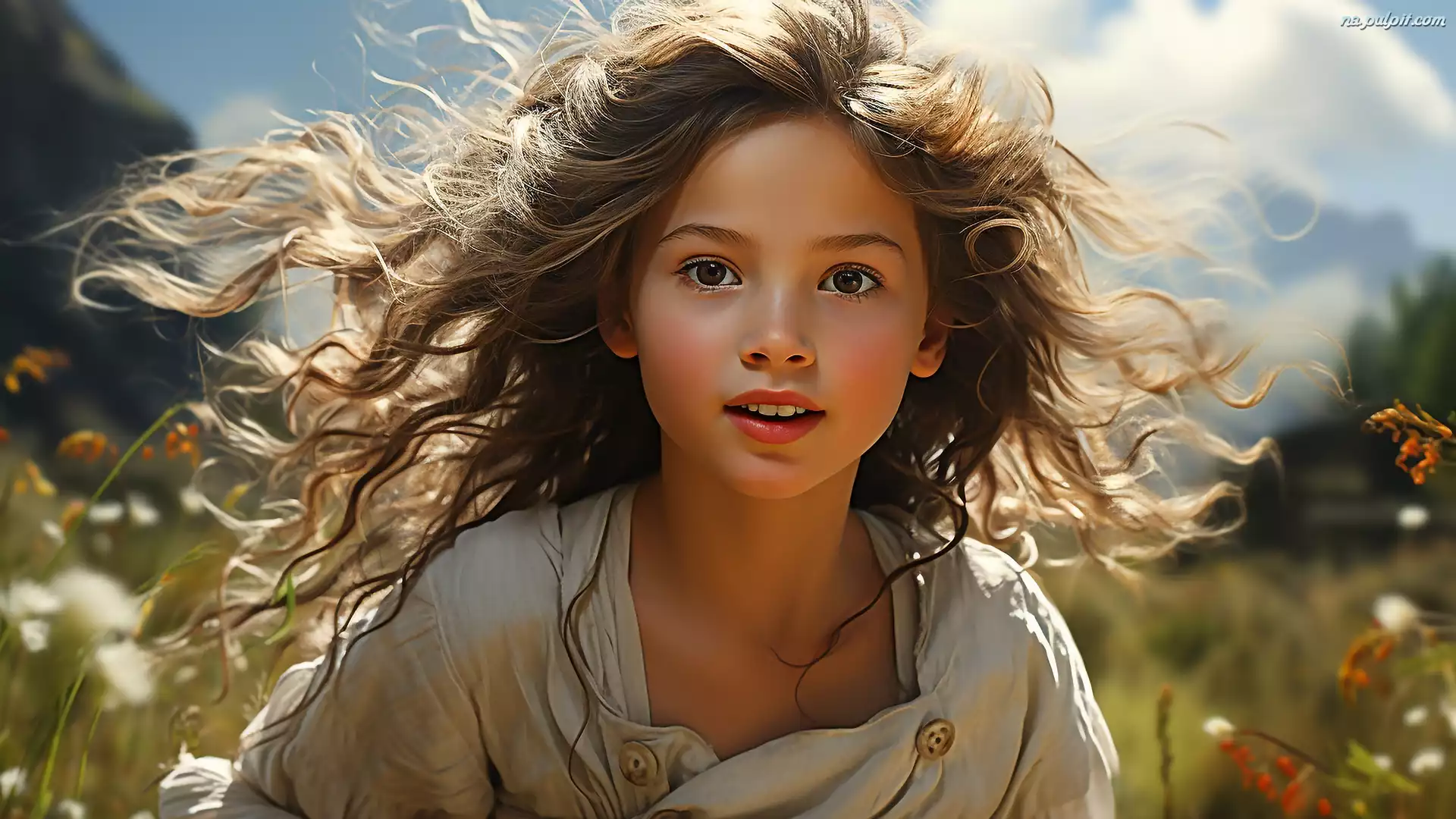 Włosy, Dziewczynka, Rozwiane, 2D, Długie