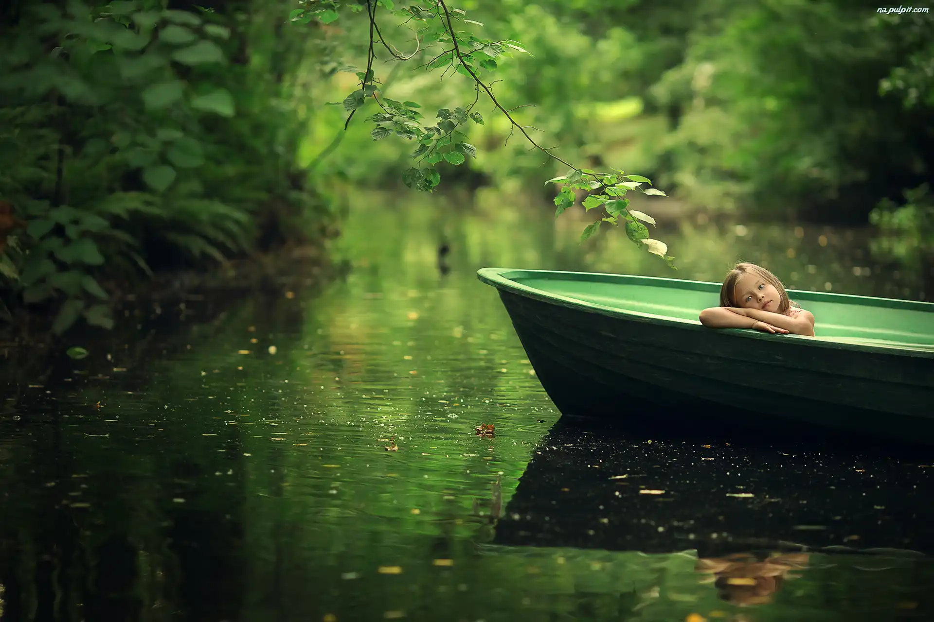 Łódka, Rzeka, Dziewczynka, Zieleń Na Pulpit