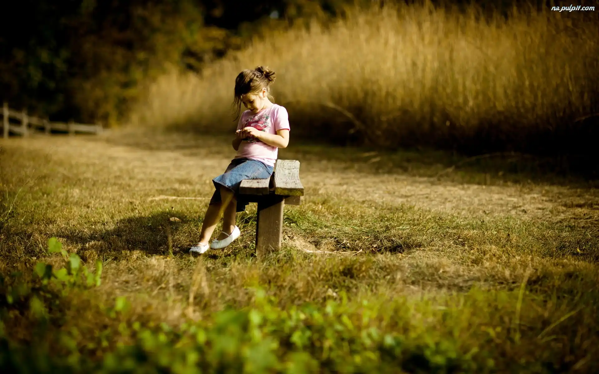 Trawa, Dziewczynka, Ławeczka Na Pulpit