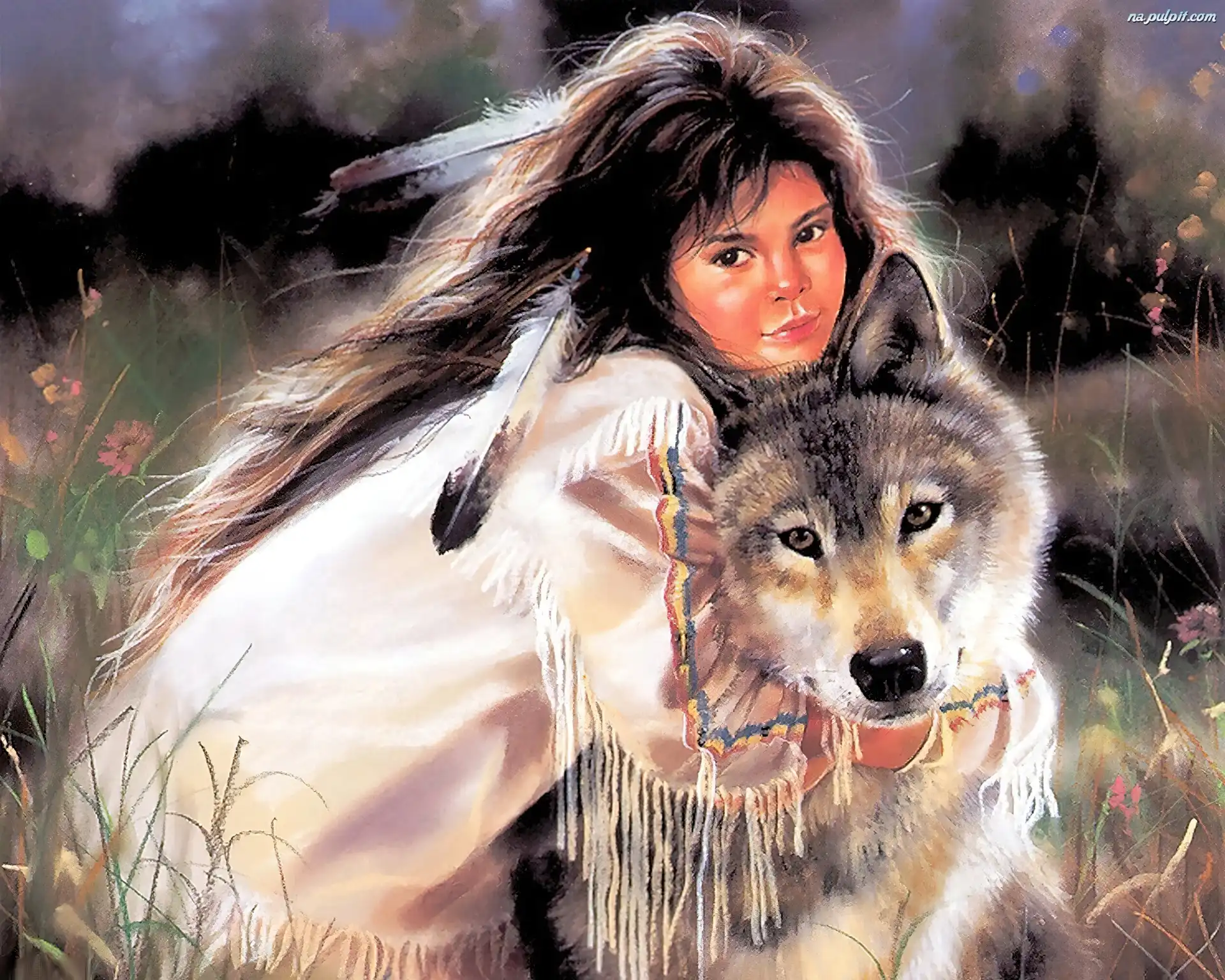 Wilk, Dziewczynka, Indianka Na Pulpit
