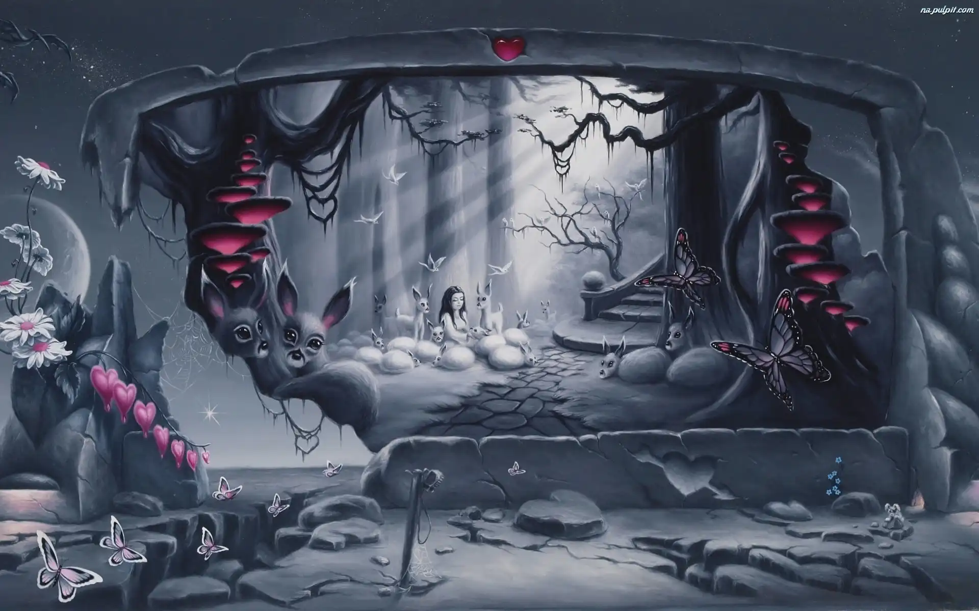 Dziewczynka, Kwiaty, Drzewa, Motyle, Zwierzęta, Serca Na Pulpit