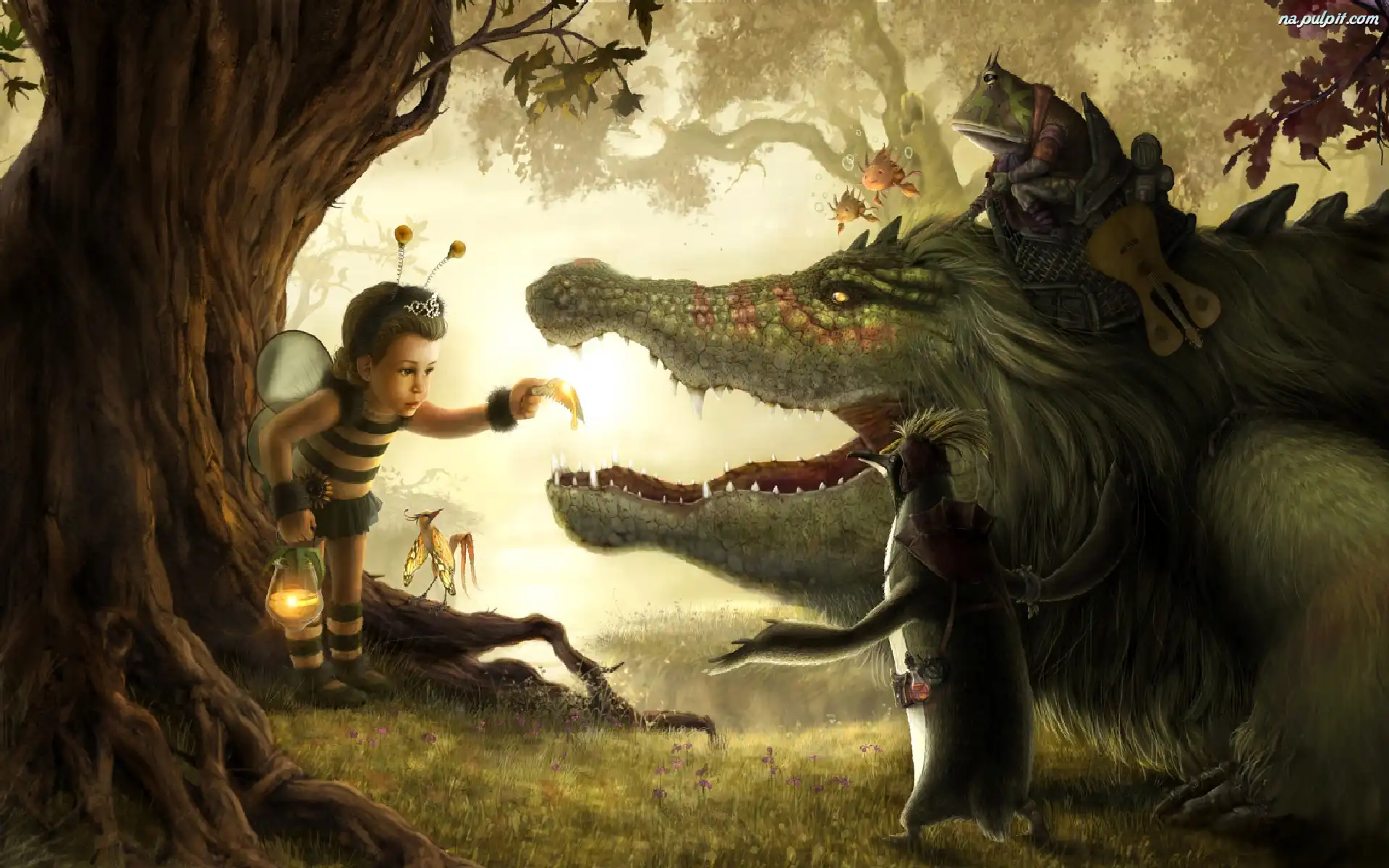 Zwierzęta, Dziewczynka, Pszczółka Na Pulpit