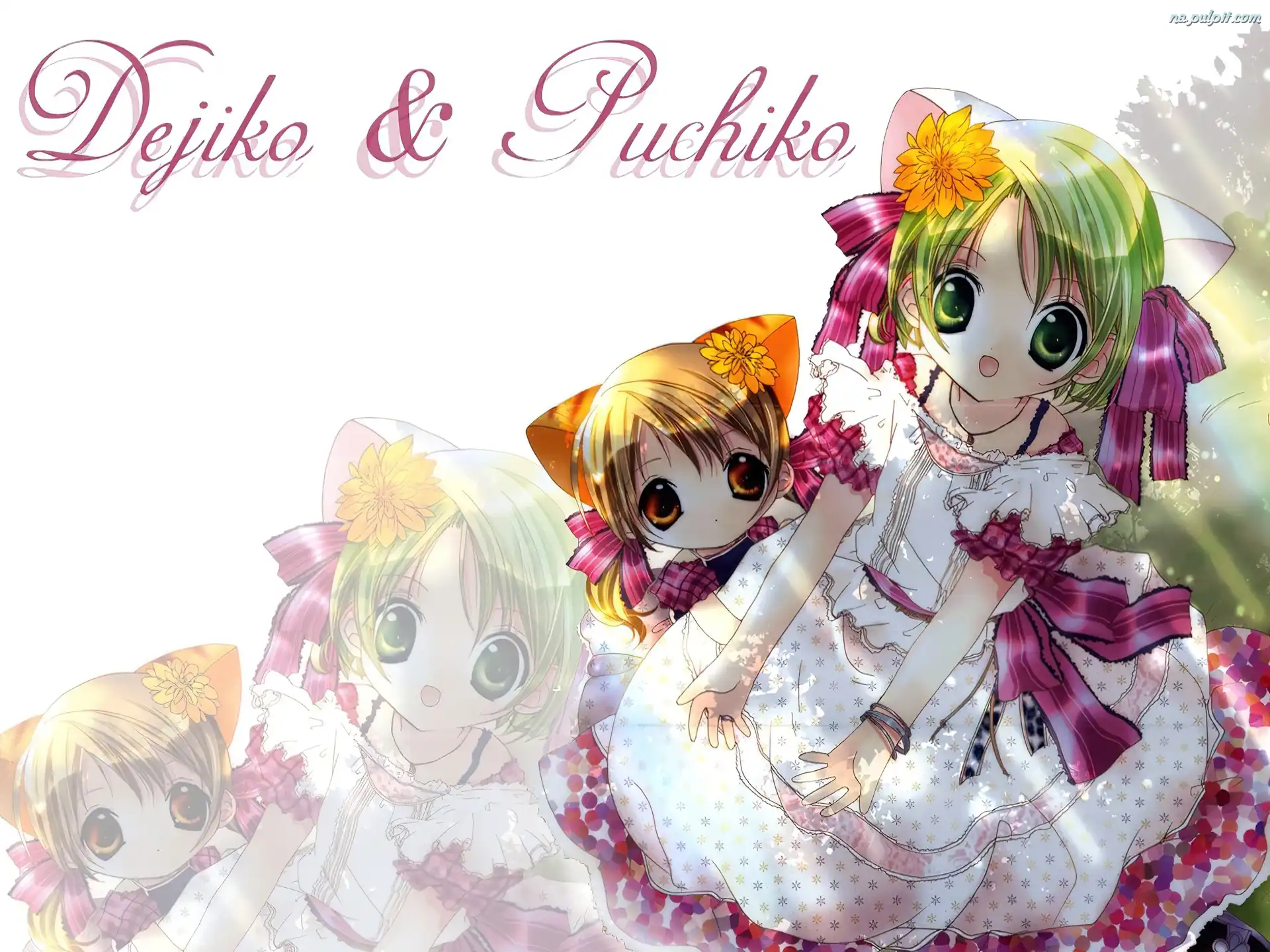 dziewczynki, kwiaty, napis, Digi Charat, suknia Na Pulpit