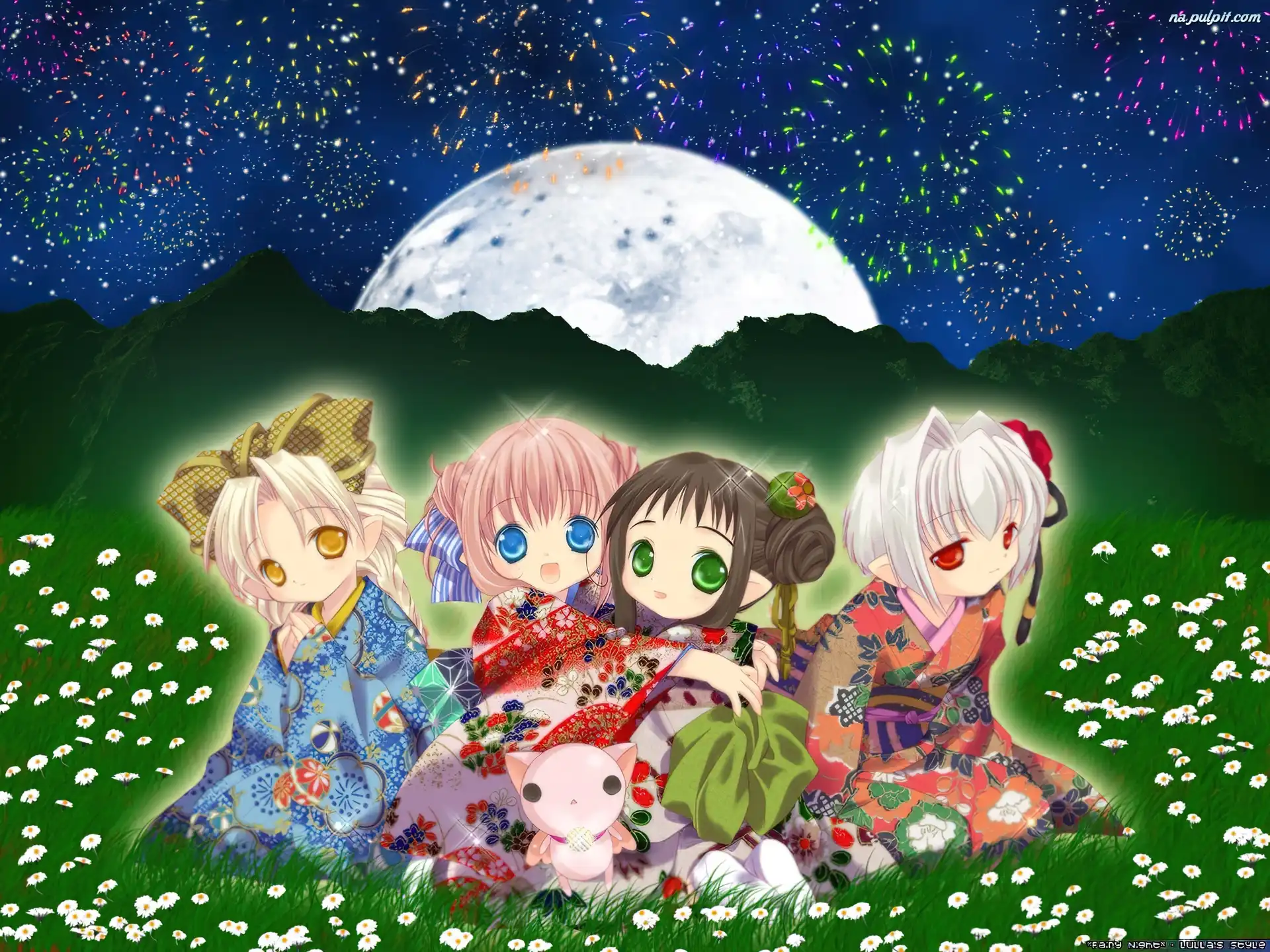 dziewczynki, łaka, kimono, Bottle Fairy, dzieci