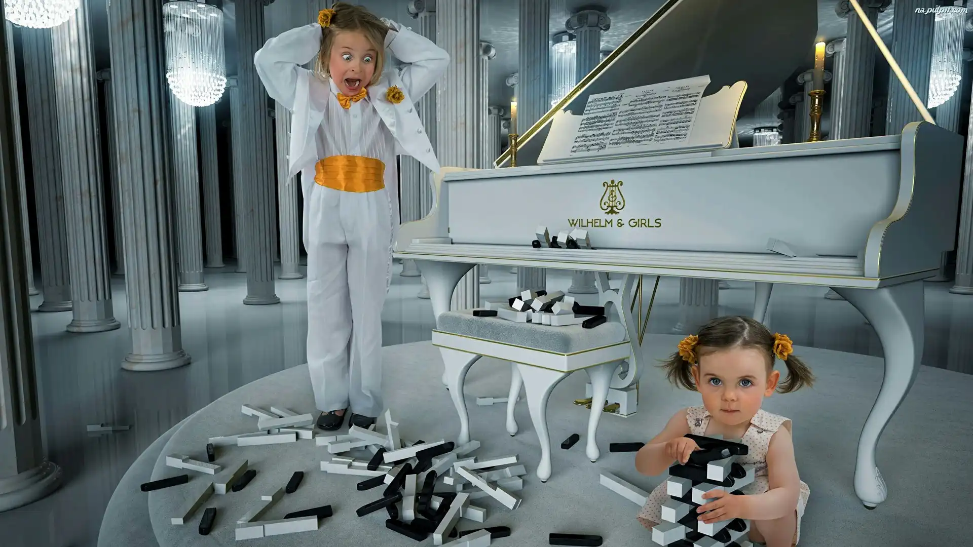 Åšmieszne, Fortepian, Dziewczynki, Klawisze