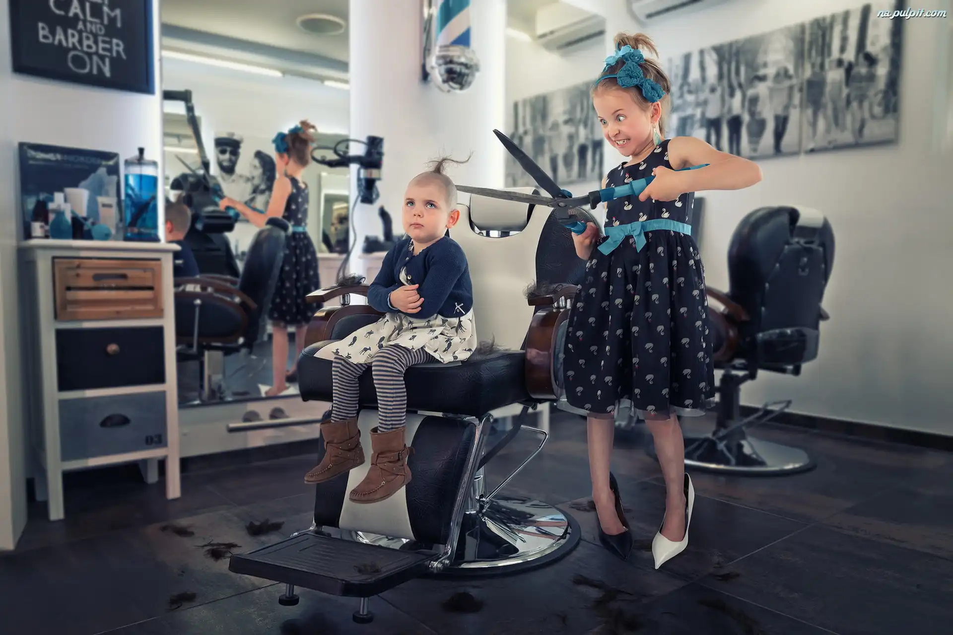 Śmieszne, Zakład fryzjerski, Dziewczynki, Nożyczki