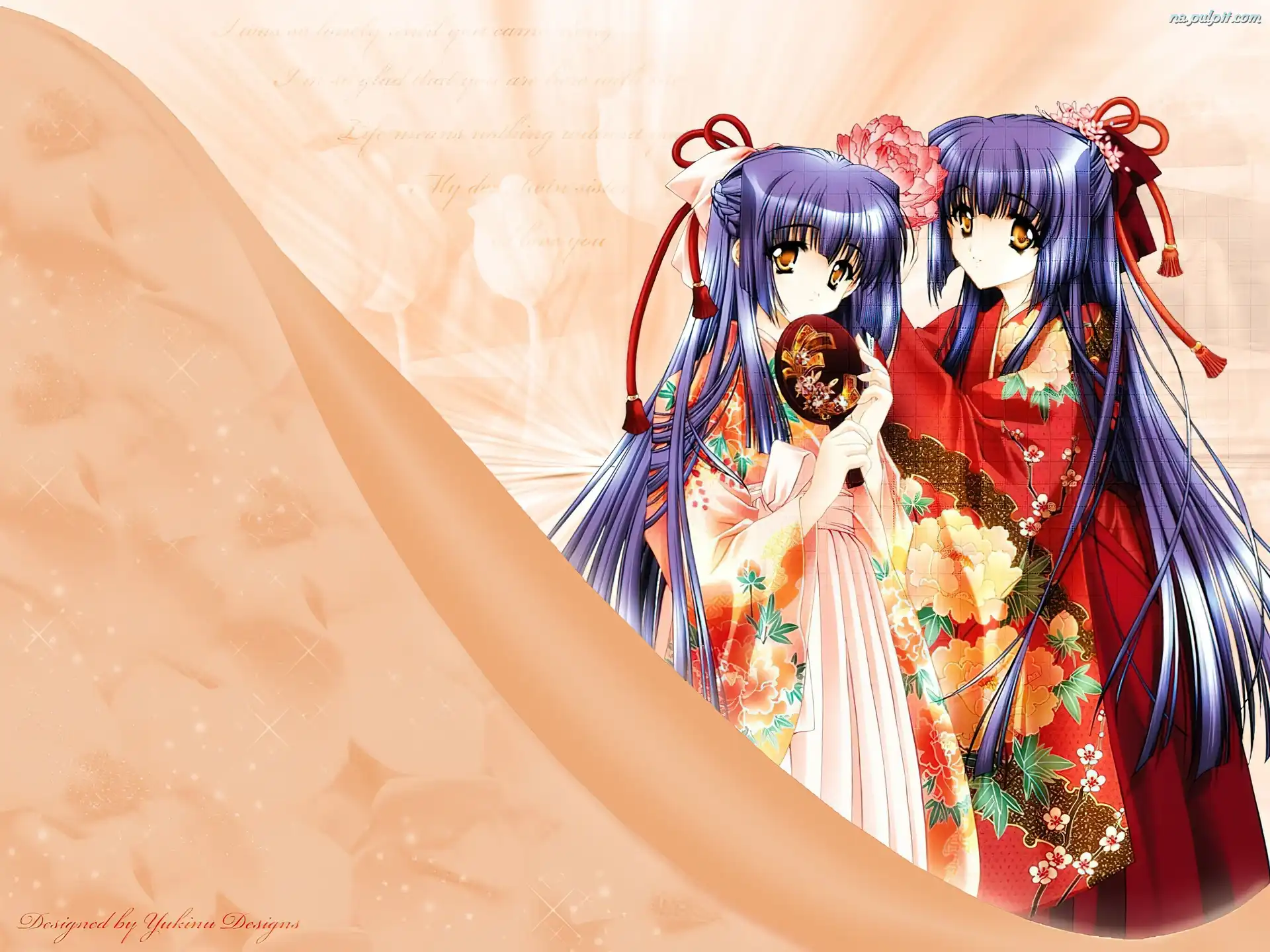 dziewczyny, kimono, Cg Art, kwiat Na Pulpit