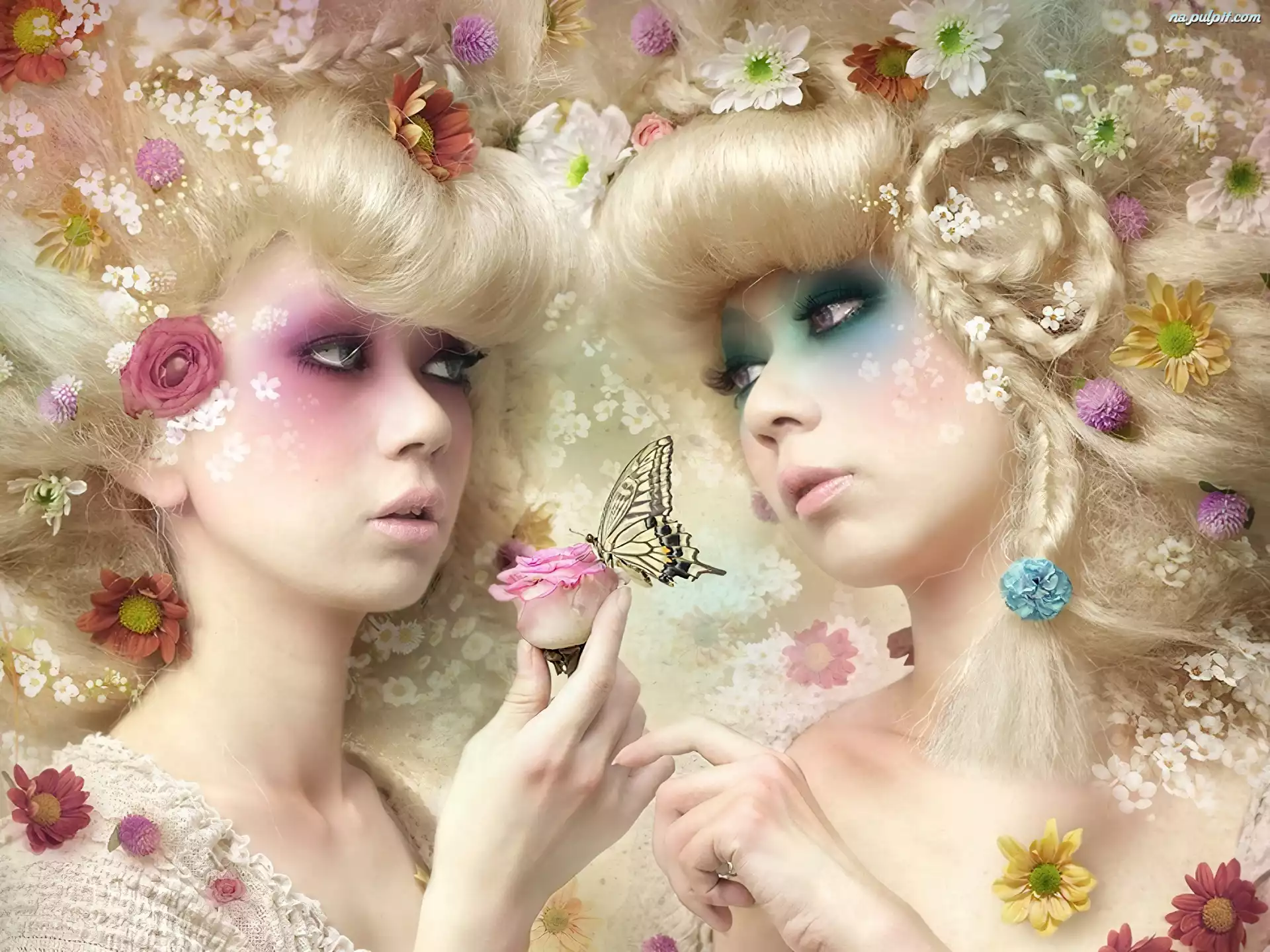 Kwiaty, Dziewczyny, Makijaż