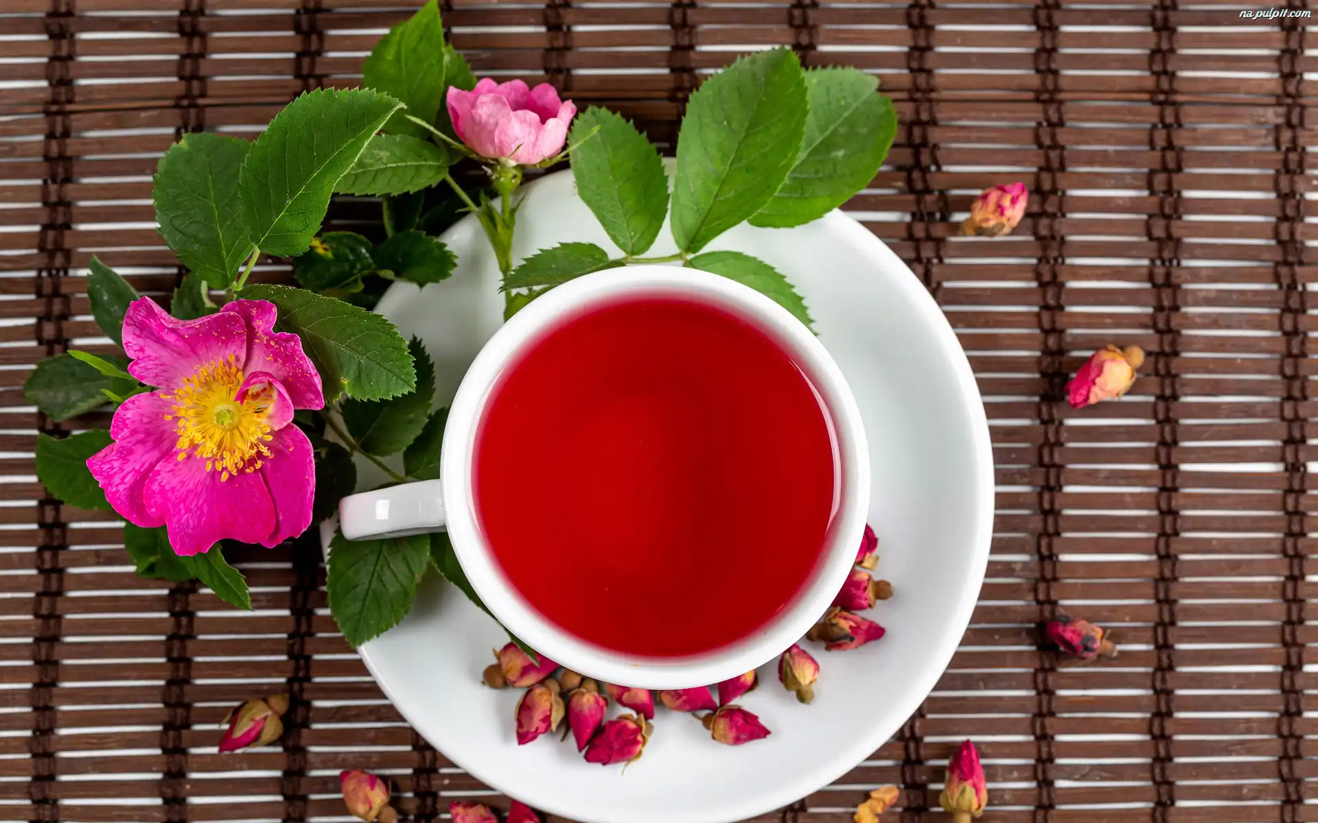 Dzikie róże, Herbata, Filiżanka, Kwiaty