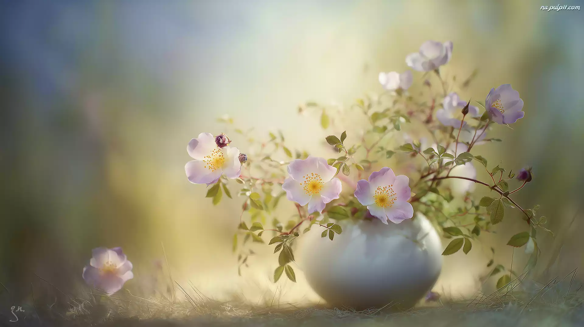 Kwiaty, Dzikie róże, Grafika AI Na Pulpit