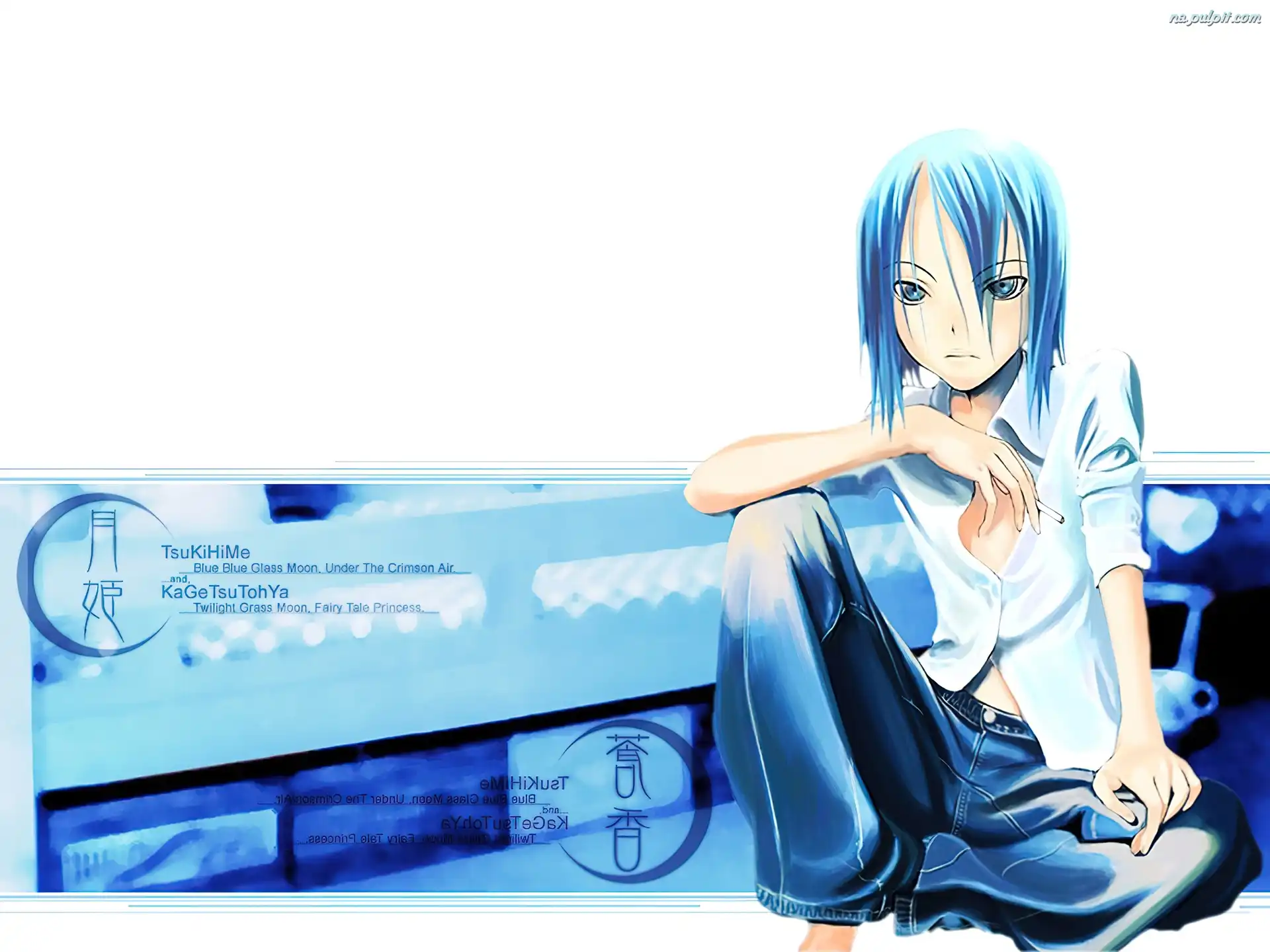 dżinsy, Shingetsutan Tsukihime, niebieskie włosy