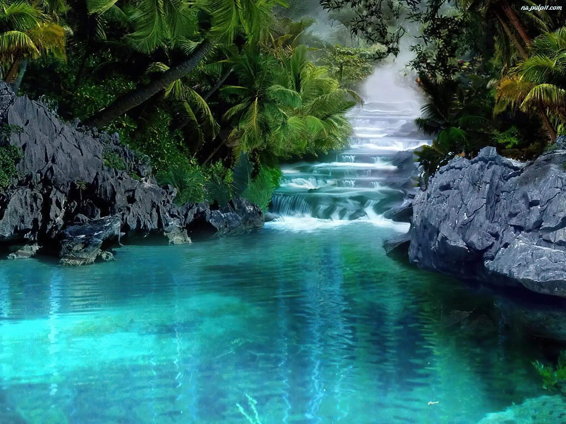 Skały, Dżungla, Wodospad Na Pulpit