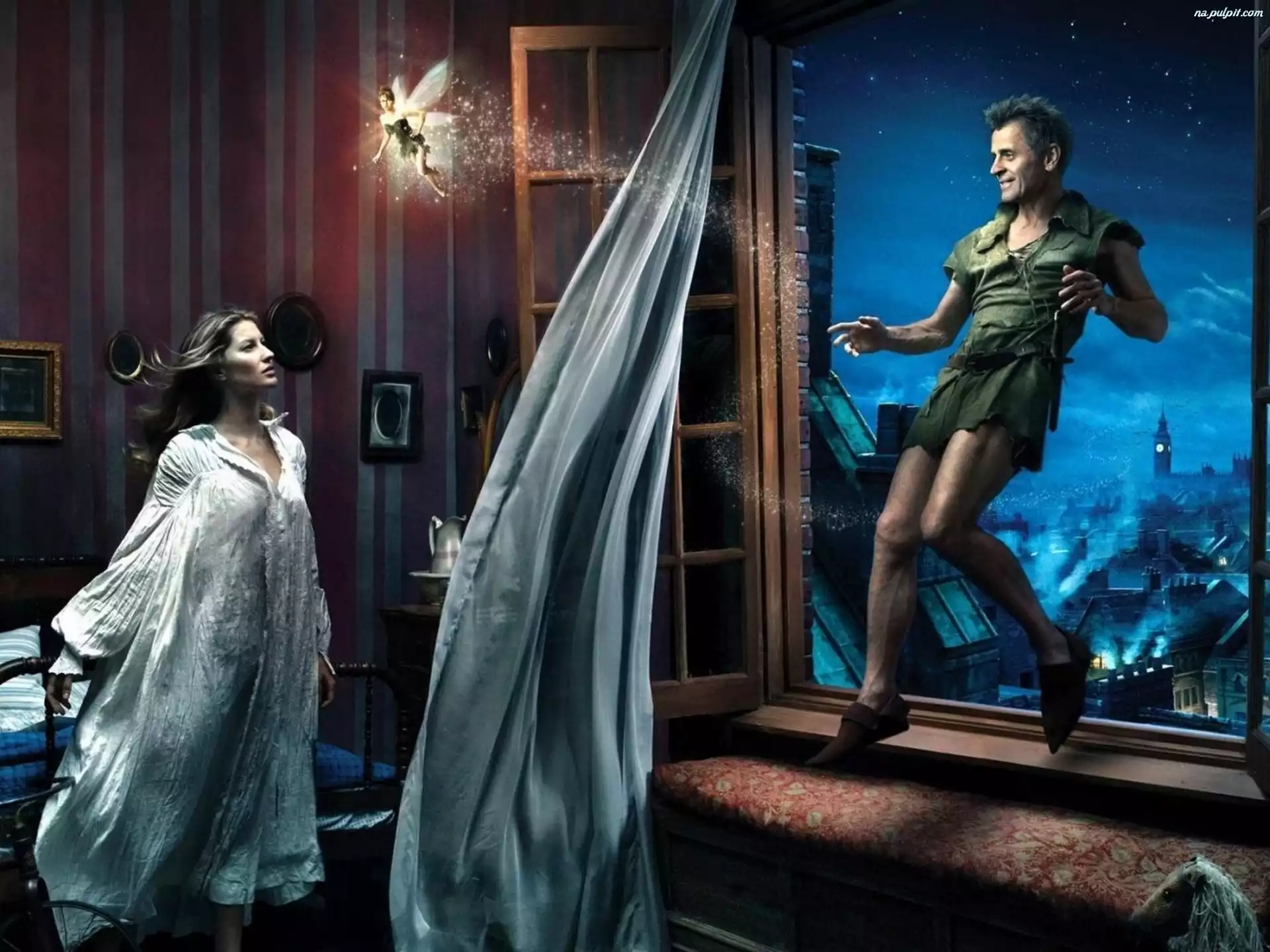 Dzwoneczek, PiotruÅ› Pan, Wendy PiotruÅ› Pan, Peter Pan PiotruÅ› Pan, Bohaterowie, Bajki PiotruÅ› Pan, Pirat Disney, Londyn, Nibylandia, PiotruÅ› Pan, Thomas Kinkade, Peter Pan