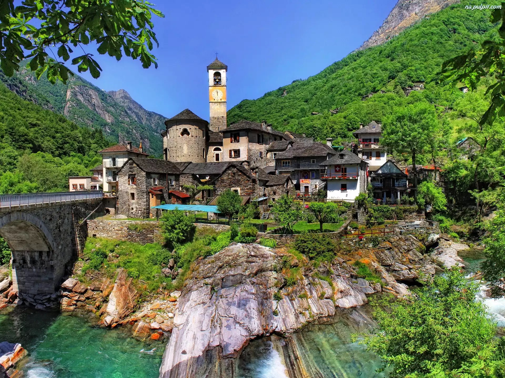 Dzwonnica, Most, Zieleń, Góry, Domy, Rzeka Na Pulpit