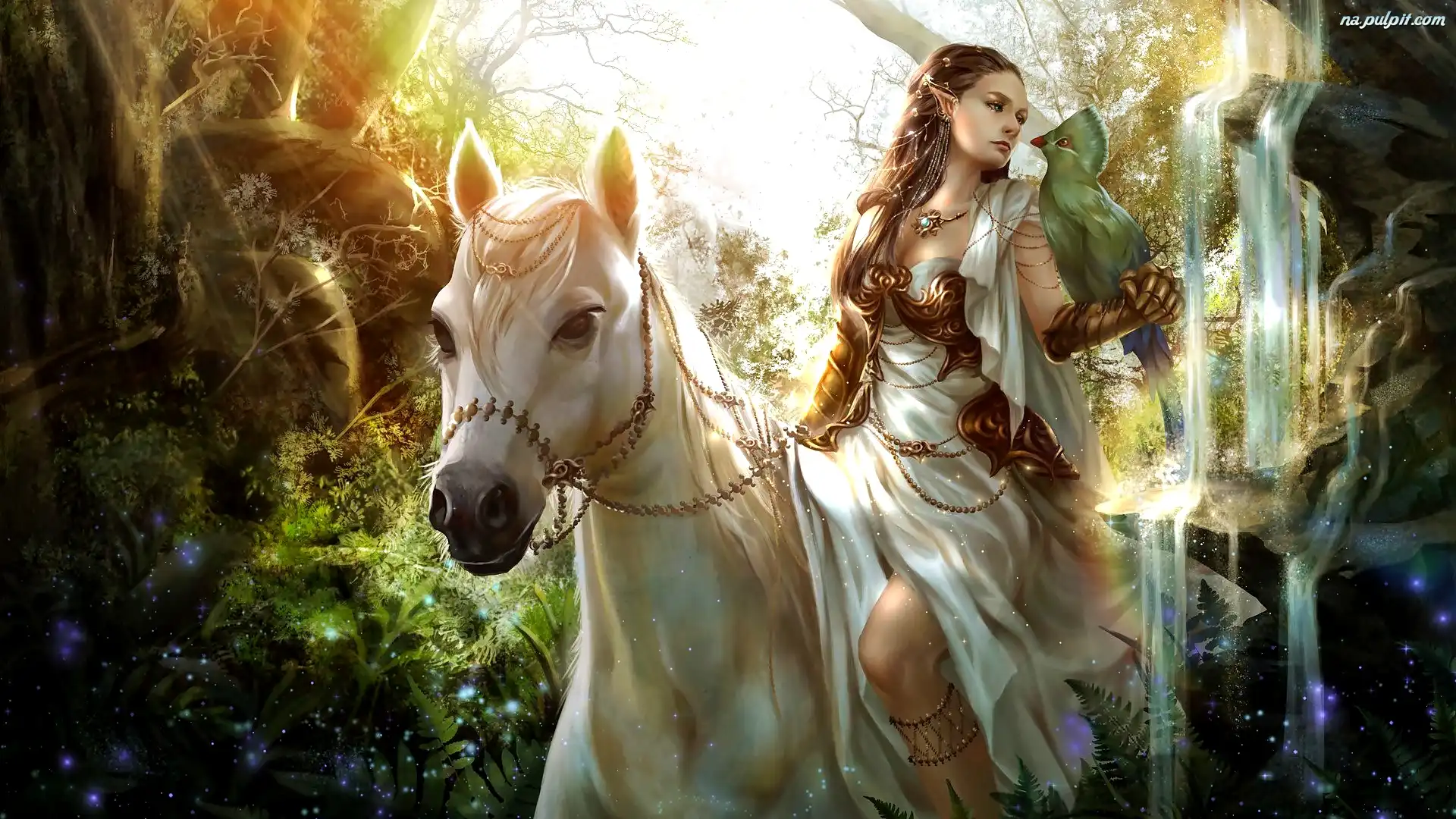 Fantasy, Elf, Rośliny, Koń, Biały, Kobieta, Ptak Na Pulpit