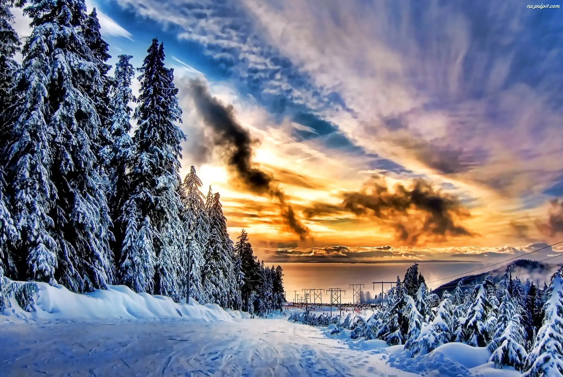 Energetyczne, Śnieg, Chmury, Niebo, Linie Na Pulpit