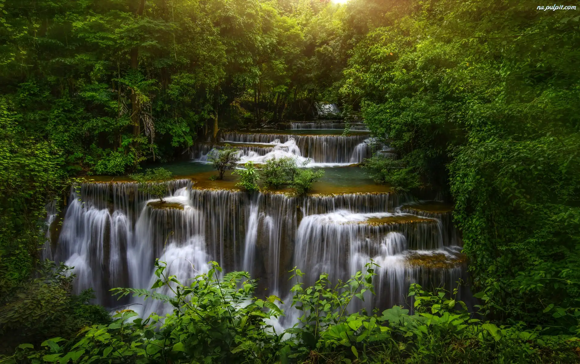 Kaskada, Prowincja Kanchanaburi, Tajlandia, Drzewa, Wodospad Erawan, Park Narodowy Erawan Na Pulpit