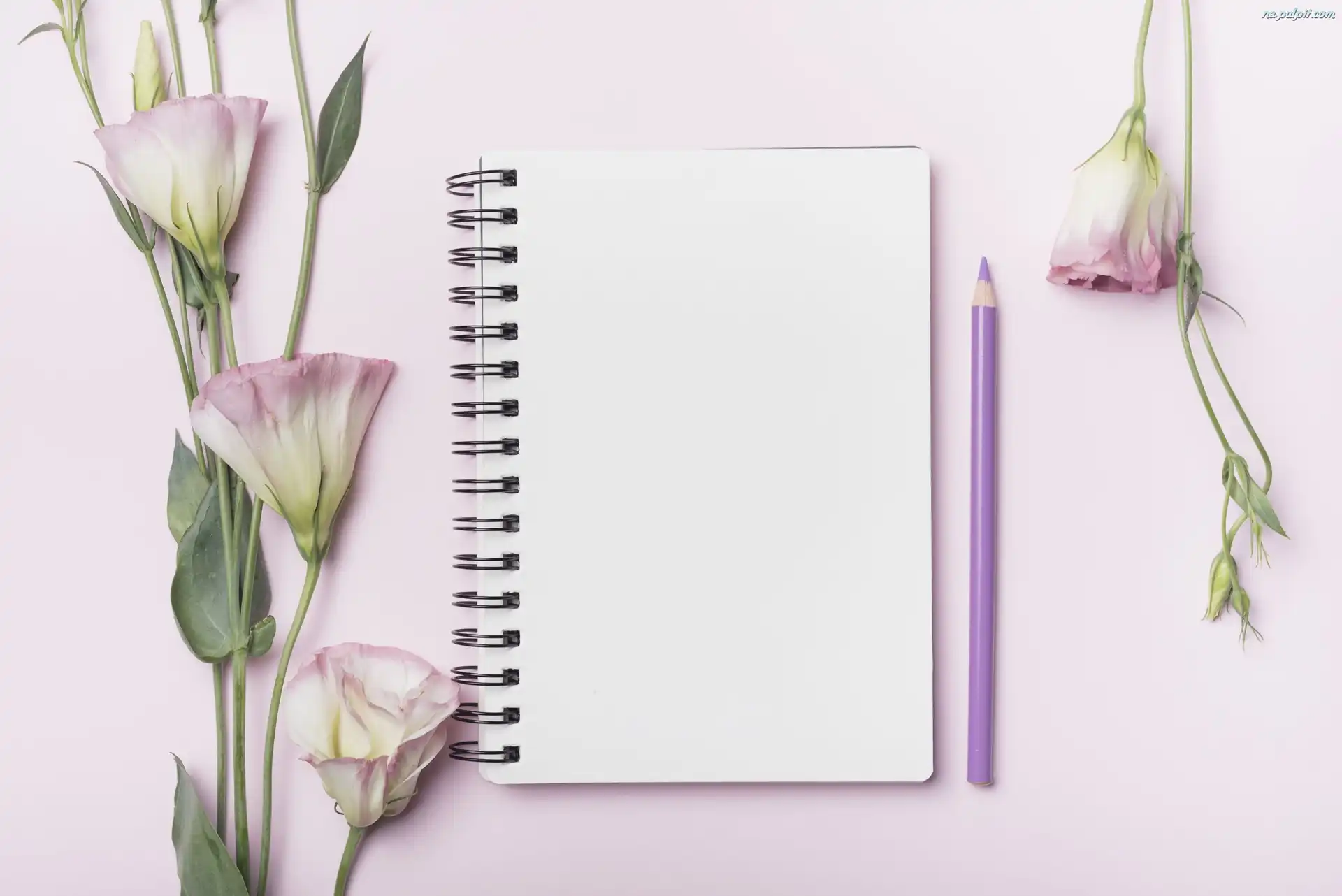 Eustoma, Fioletowe, Tło, Notatnik, Kwiaty, Kredka Na Pulpit