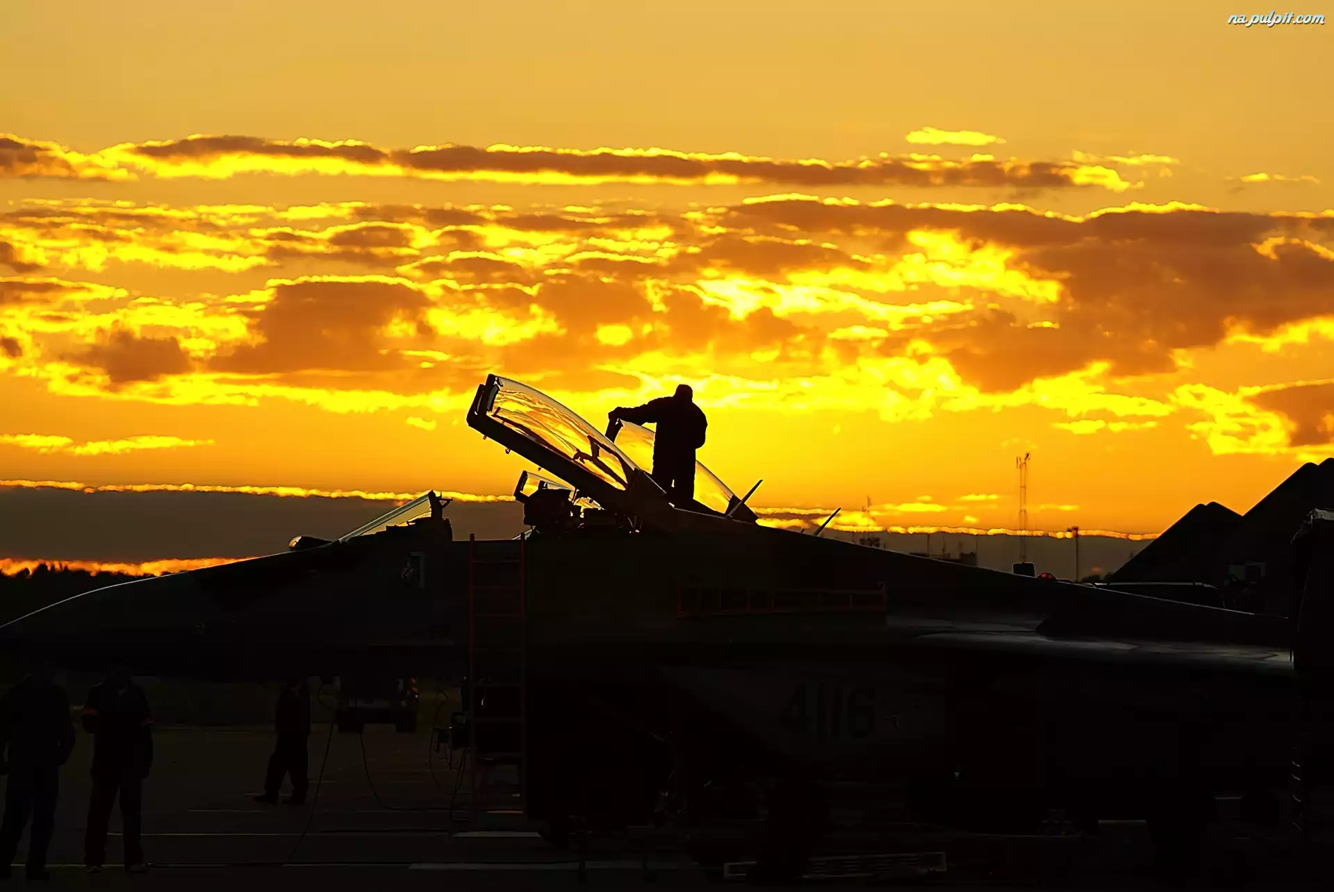 F16, Słońca, Zachód, Lotnisko Na Pulpit