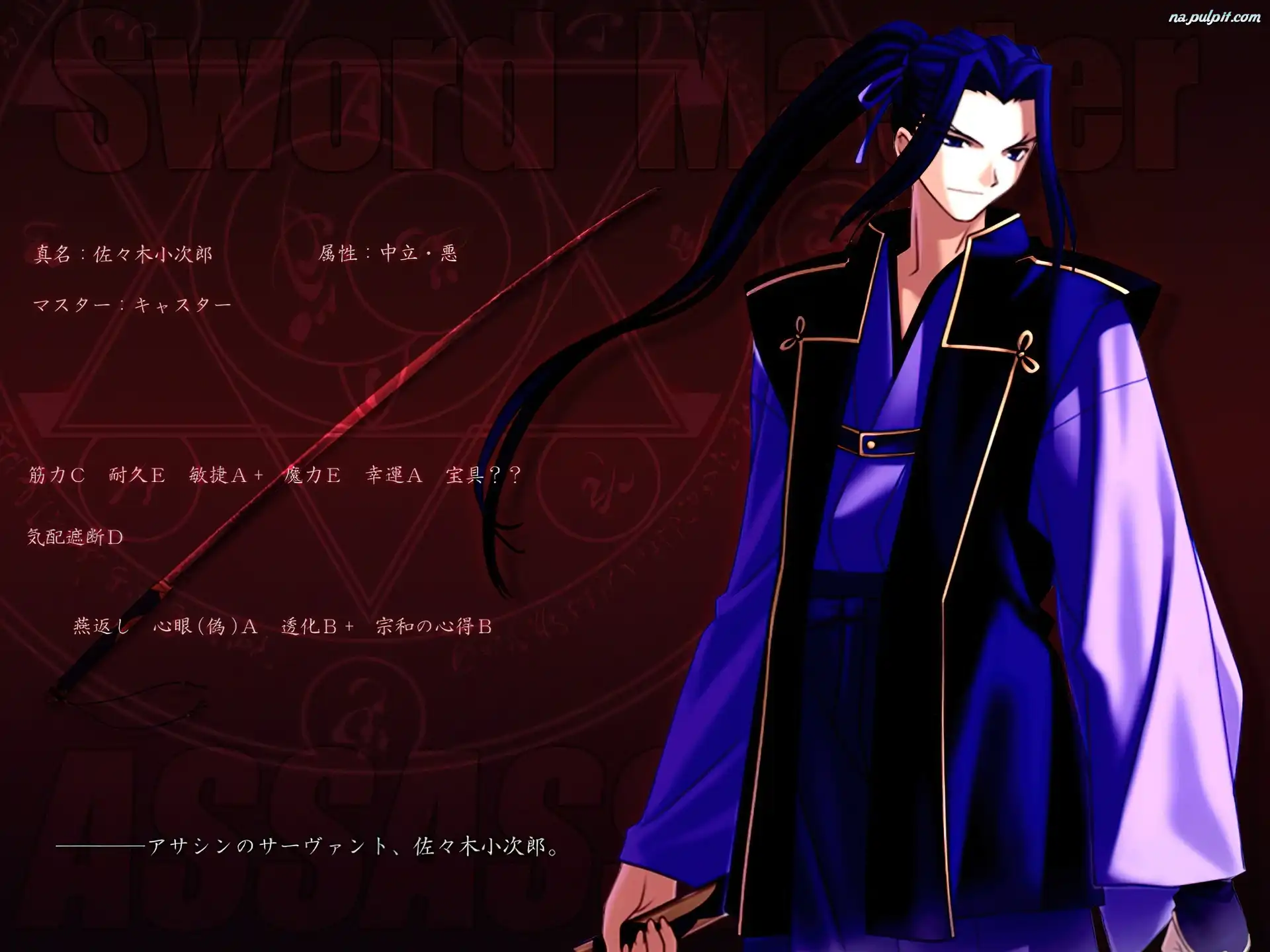 napisy, facet, katana, postać, Fate Stay Night, kimono