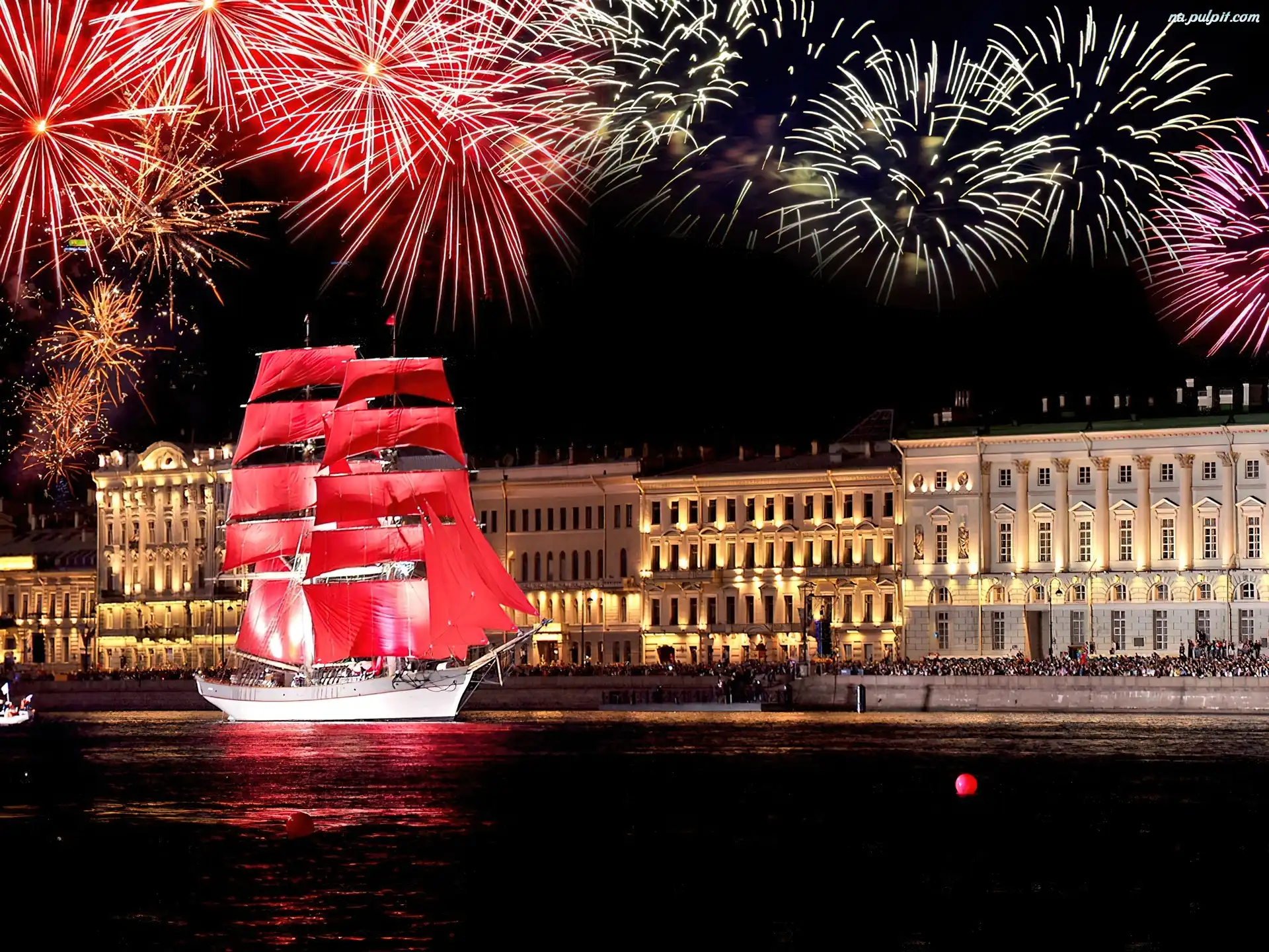 Fajerwerki, Żagle, Czerwone, Żaglowiec, Noc Na Pulpit
