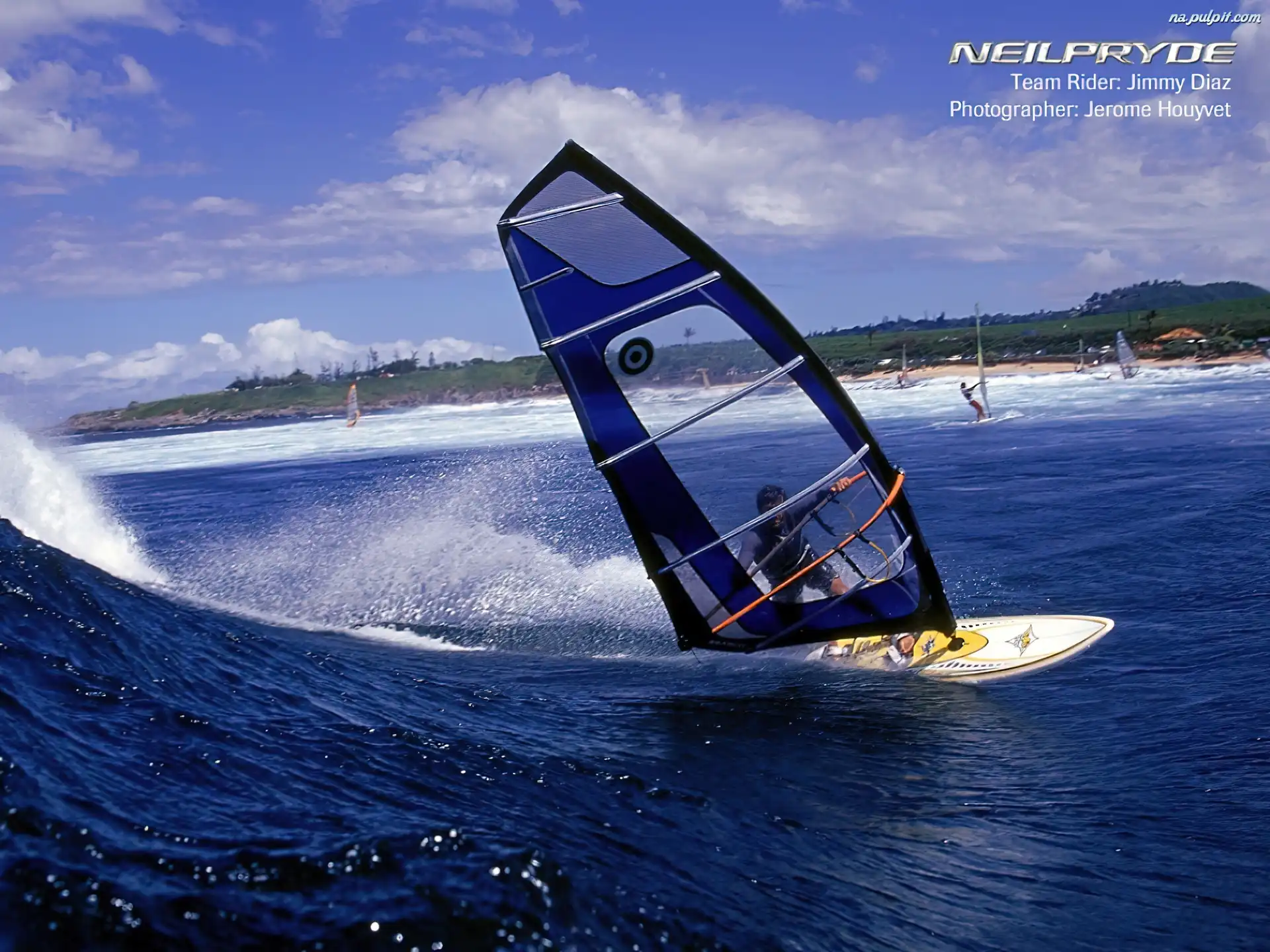 fala, żagiel , deska, Windsurfing, morze Na Pulpit