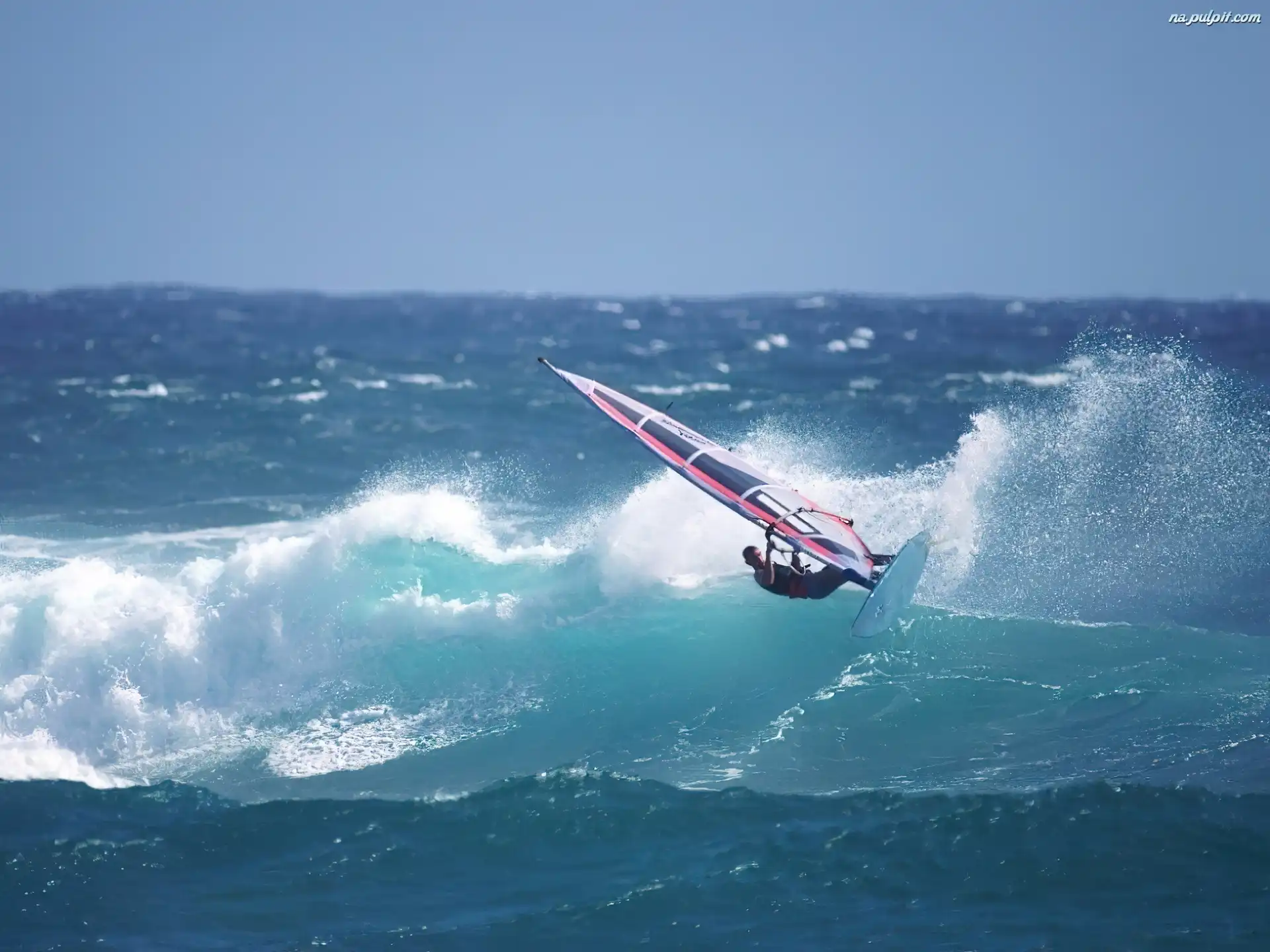 fala, żagiel , deska, Windsurfing, morze Na Pulpit