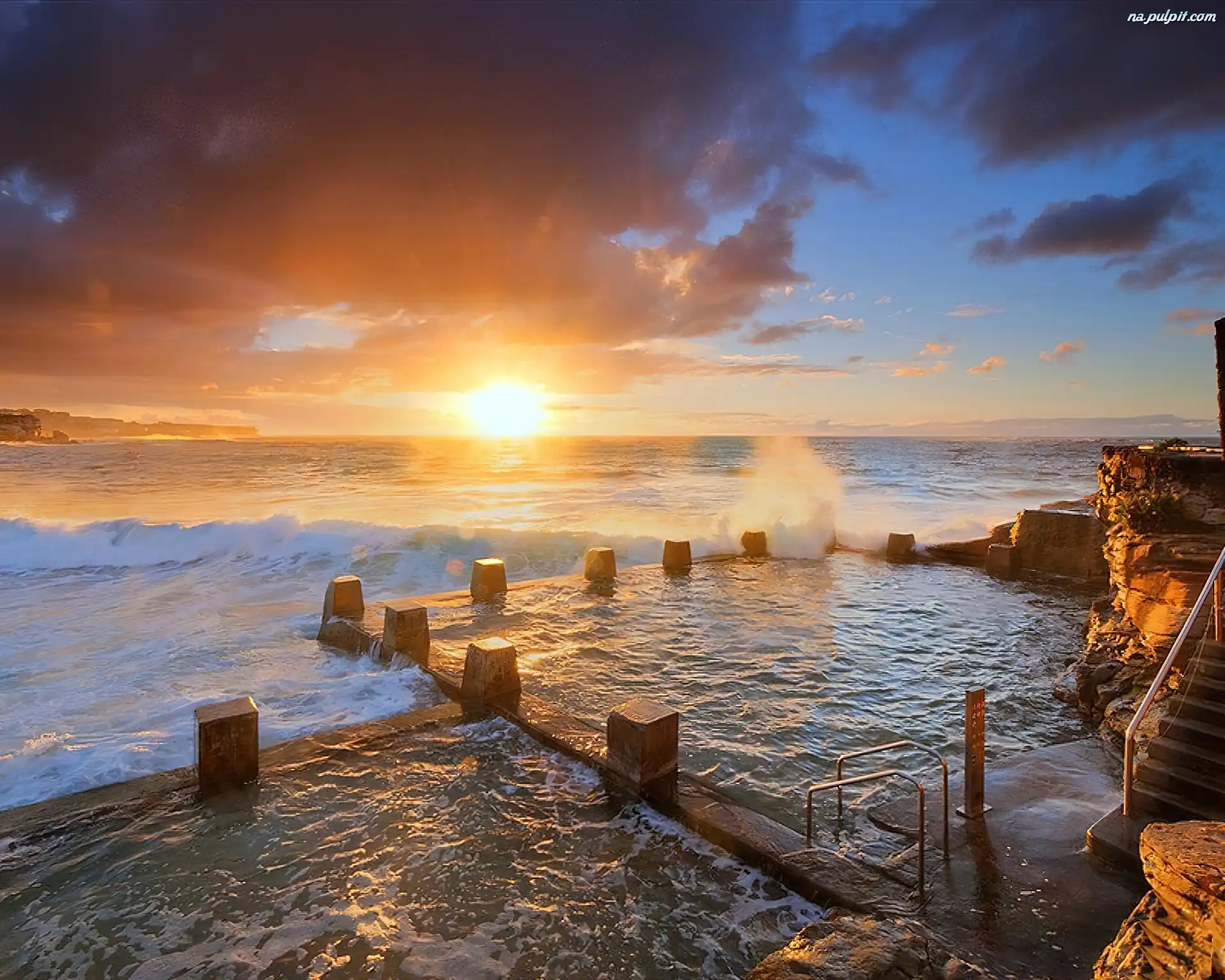Fale, Morze, Zejście, Zachód, Chmury, Słońca Na Pulpit