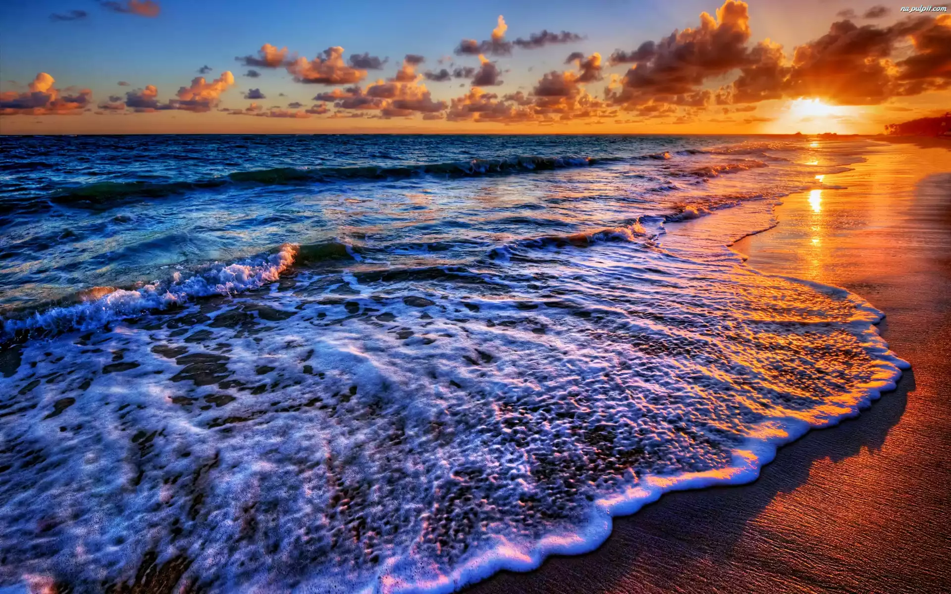 Fale, Chmury, Słońca, Zachóéd, Morze Na Pulpit