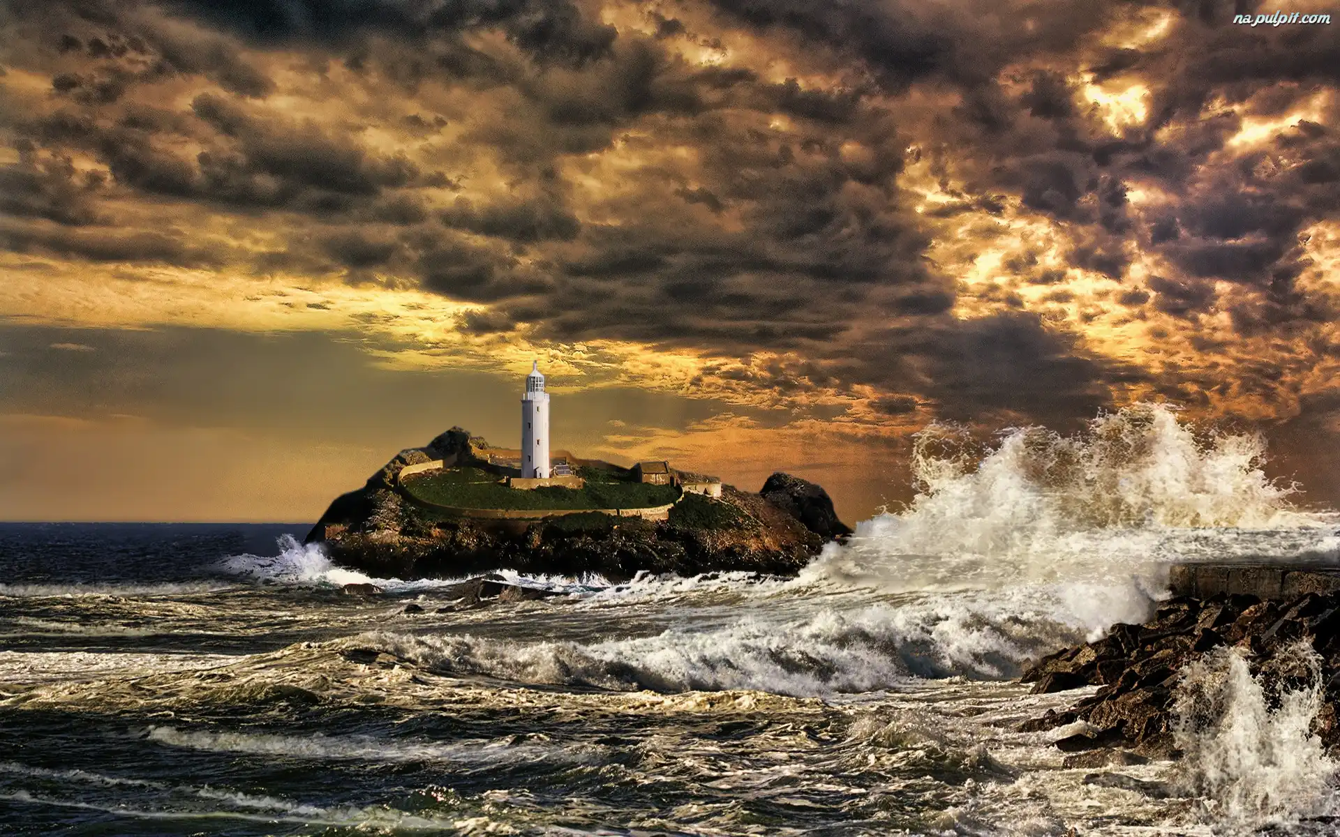 Fale, Zachód Słońca, Latarnia Morska, Morze Na Pulpit