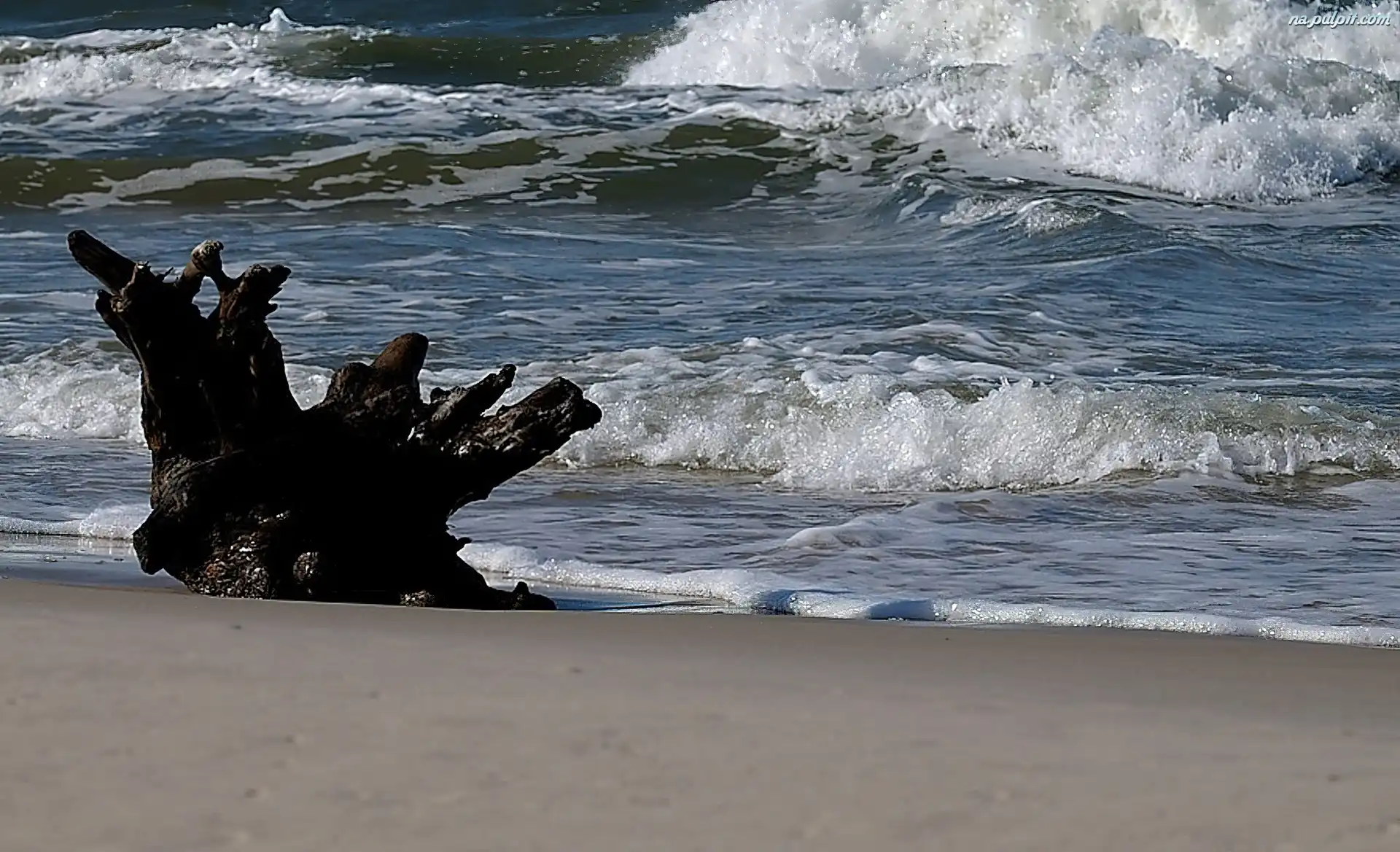 Fale, Drzewa, Konar, Morze, Piasek Na Pulpit