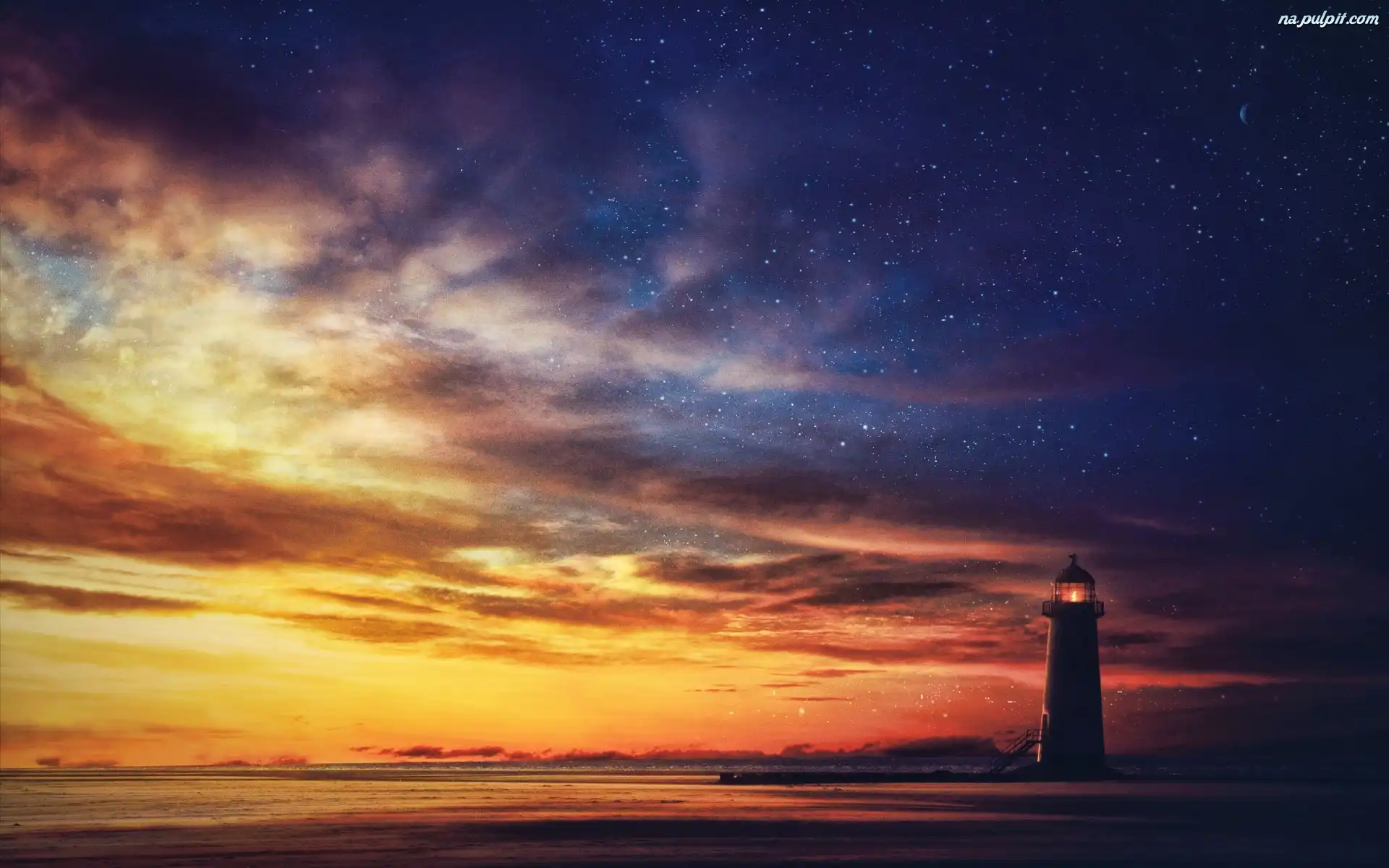 Fale, Promienie, Latarnia, Zachód, Morze, Słońce Na Pulpit