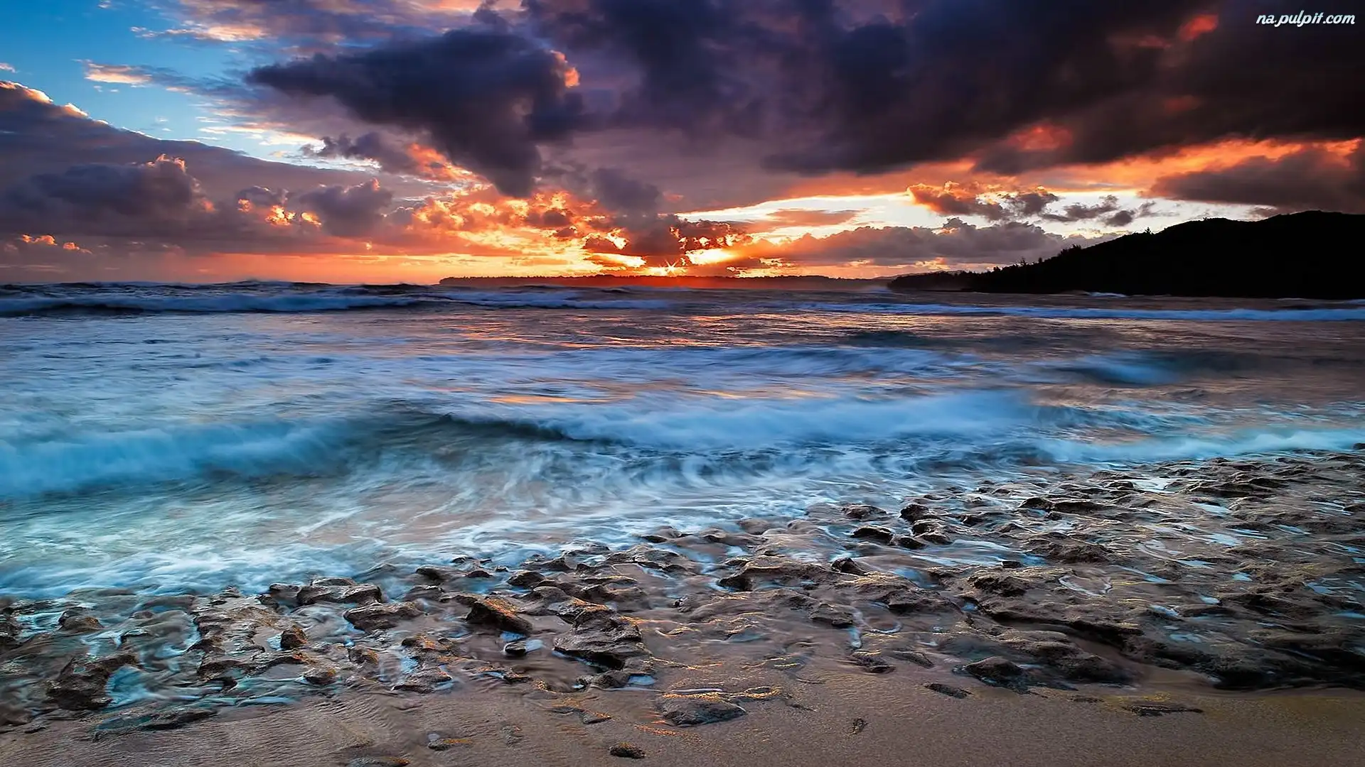 Fale, Zachód, Morze, Słońca Na Pulpit