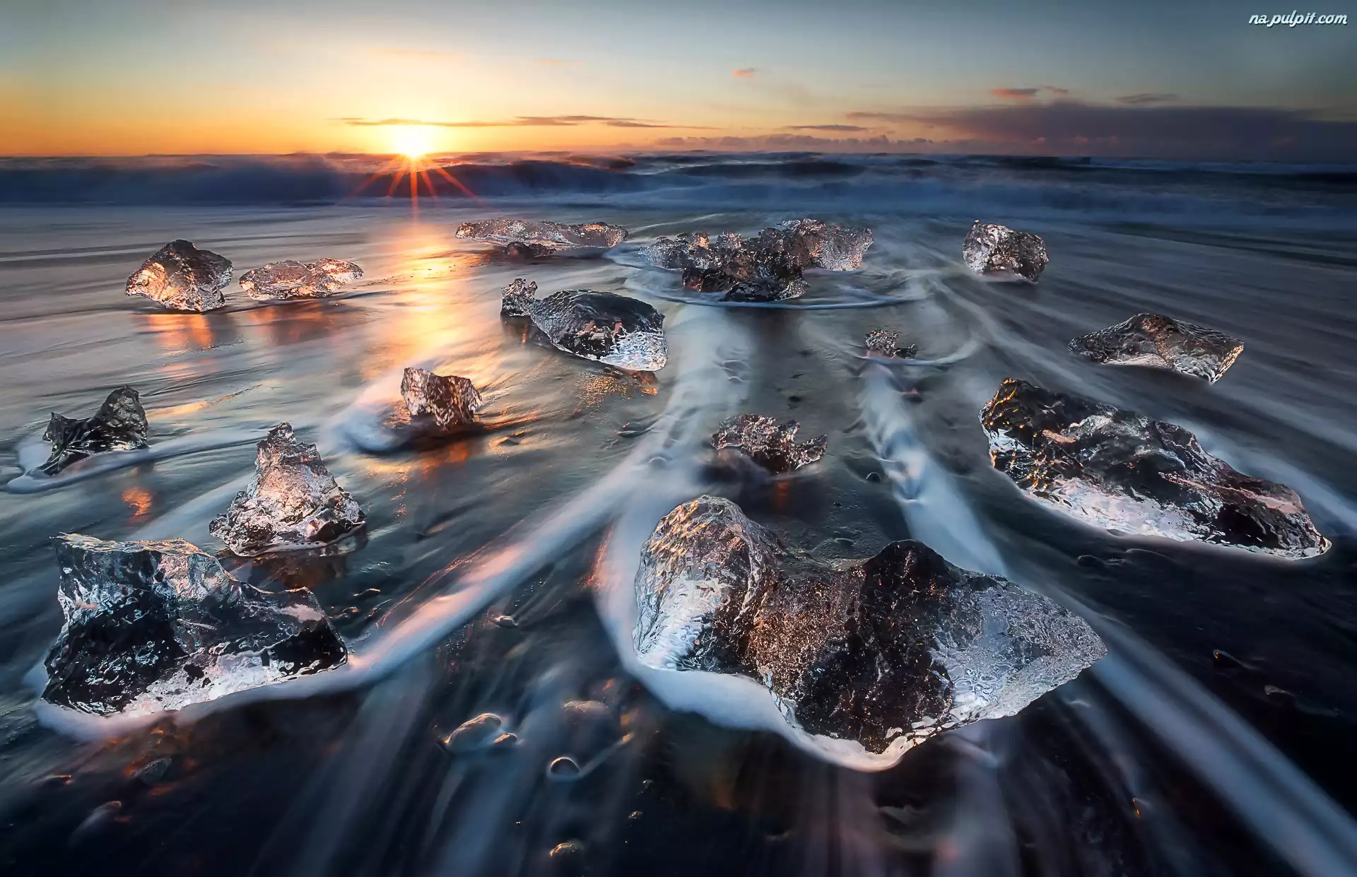 Morze, Wschód Słońca, Park Narodowy Vatnajökull, Lód, Islandia, Fale Na Pulpit