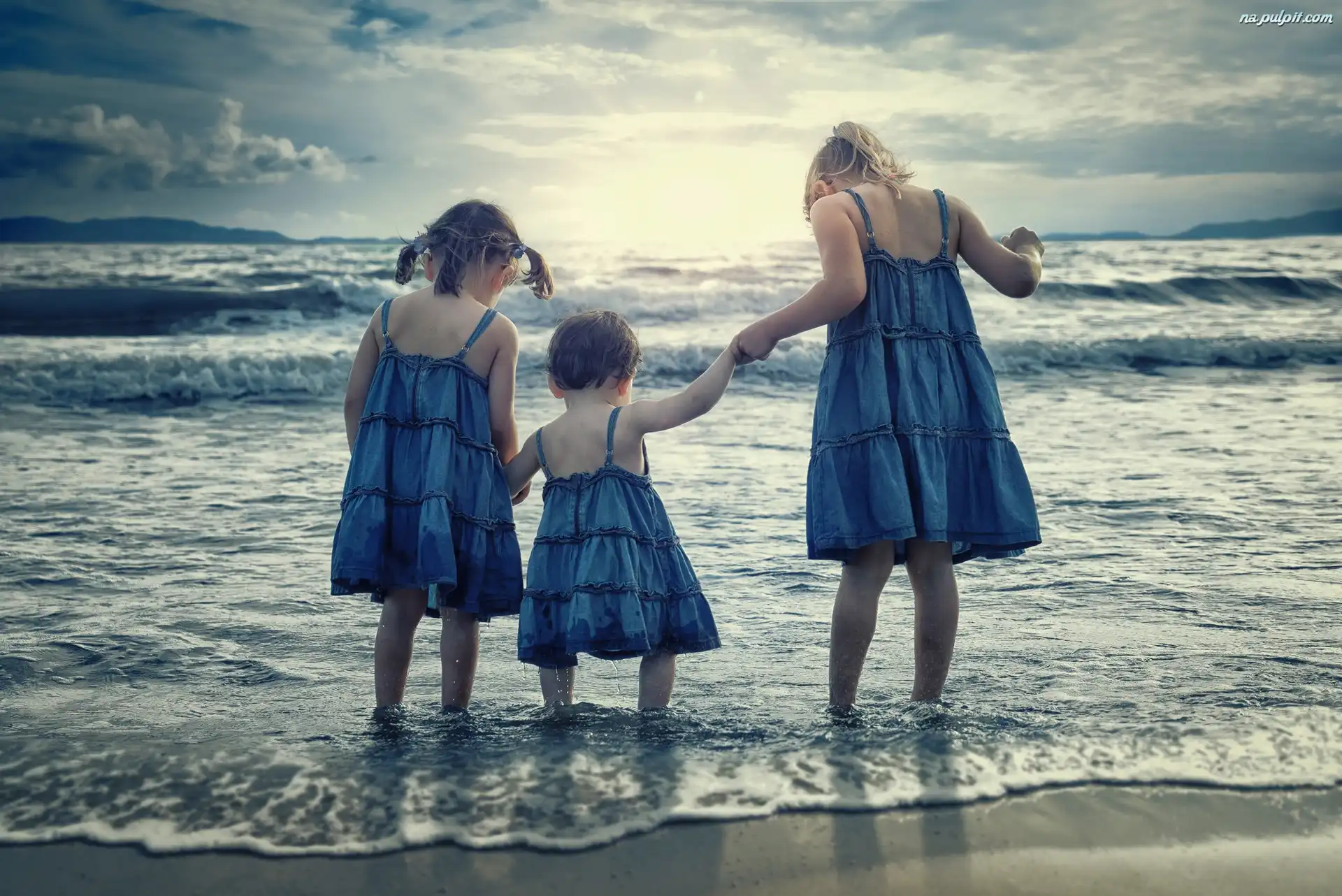 Fale, Dziewczynki, Trzy, Morze Na Pulpit