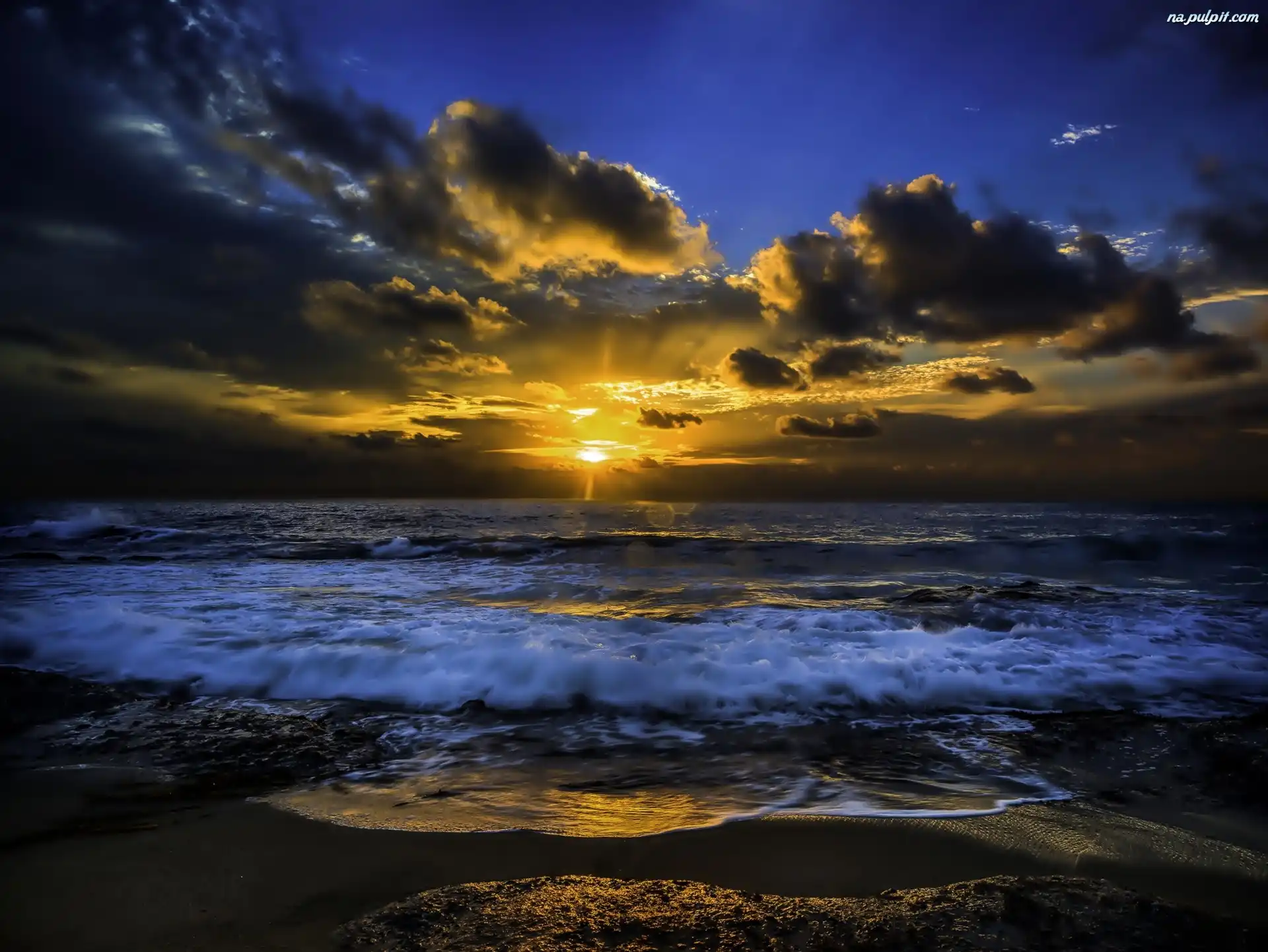 Fale, Chmury, Słońca, Zachód, Morze Na Pulpit