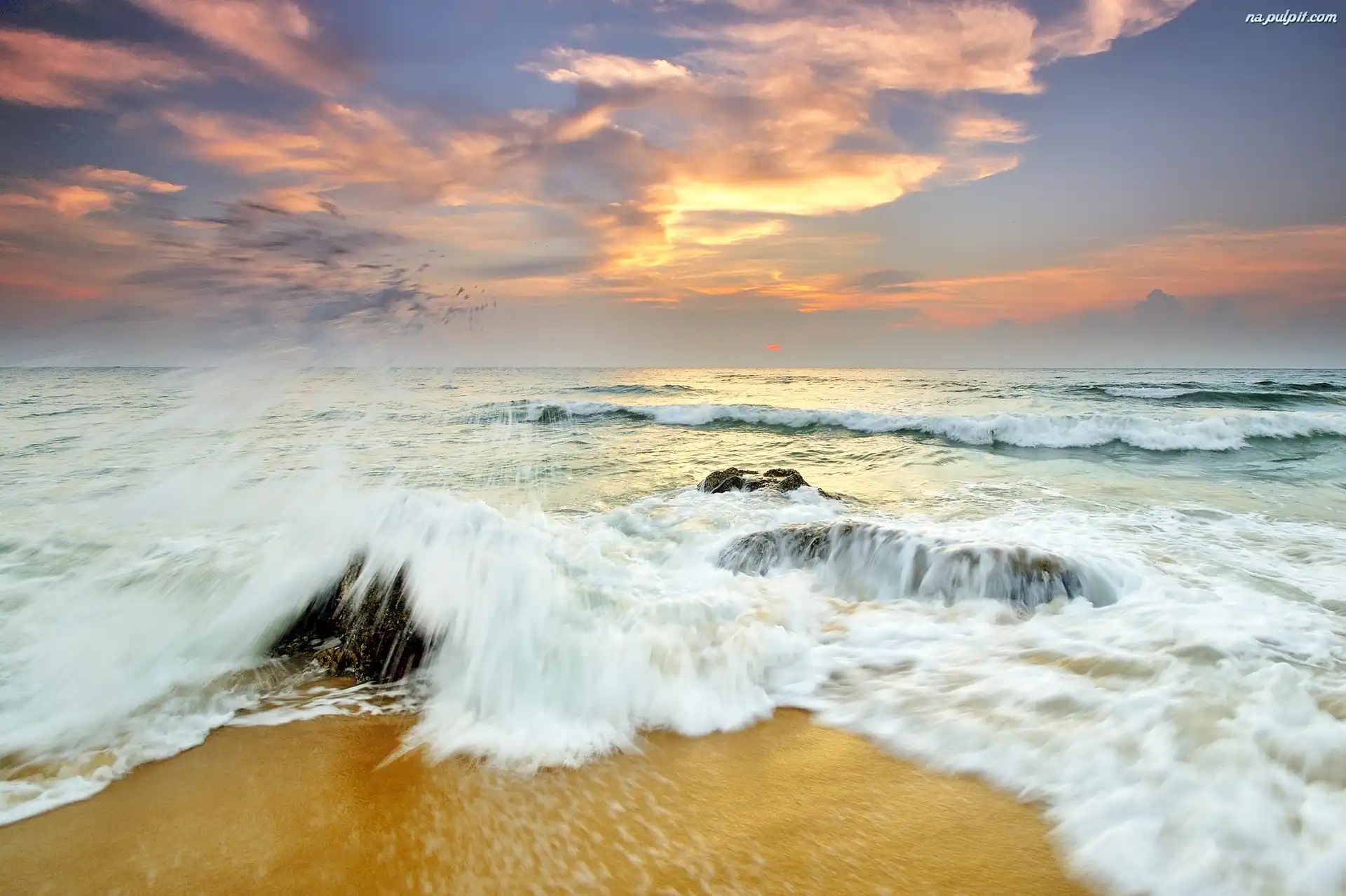 Fale, Słońca, Zachód, Morze Na Pulpit