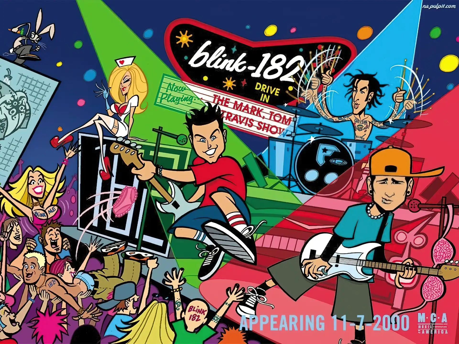 Blink 182, twarze zespołu perkusja , Blink 182, koncert, fani, gitara spodnie, znaczki , Blink 182, samolociki zdjęcie, Lime, Blink 182, woda Mark, Tom , Blink 182, Travis występ, Blink 182, zespól kot, Blink 182, Ginette Blink 182, ufo tatuaże, Blink 182, ludziki tatuaże, Blink 182, zespół
