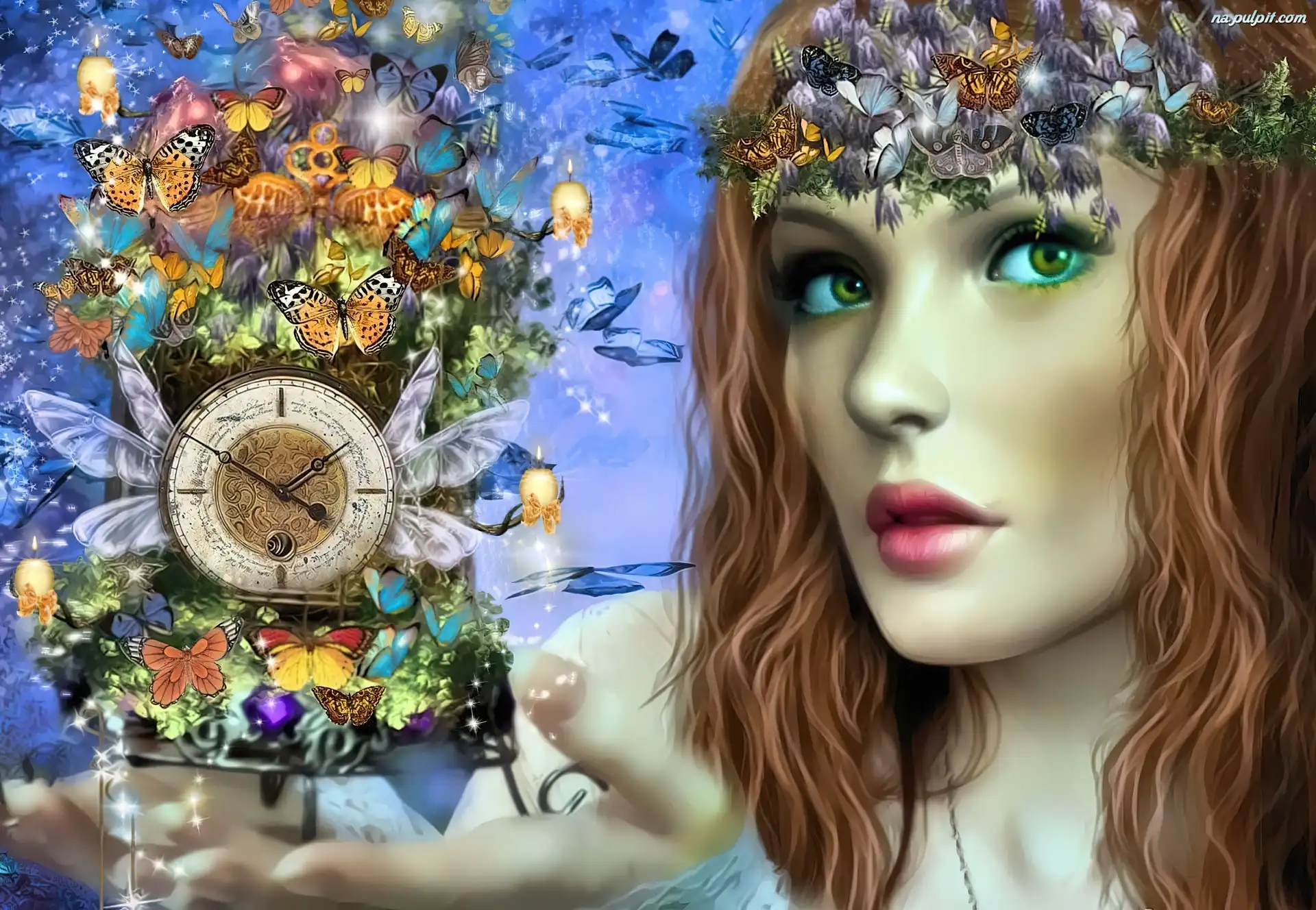 Fantastyka, Czas, Zegar, Dziewczyna, Motyle Na Pulpit