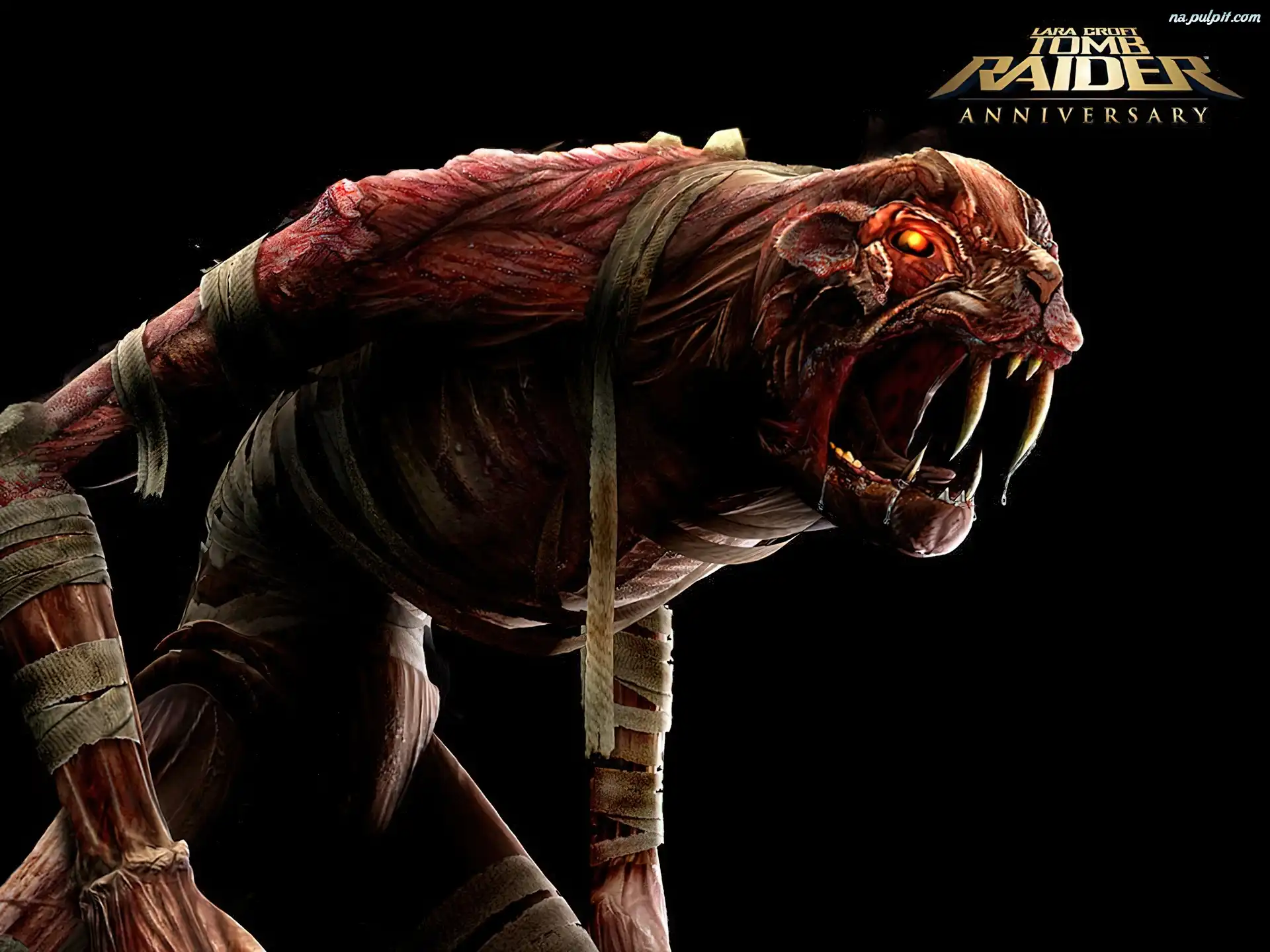 fantasy, potwór, Tomb Raider Anniversary, kły Na Pulpit