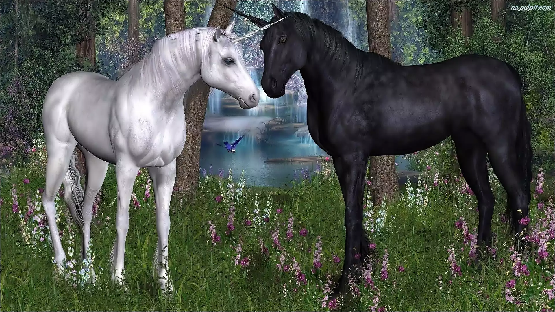 Fantasy, Czarny, Biały, Jednorożec Na Pulpit
