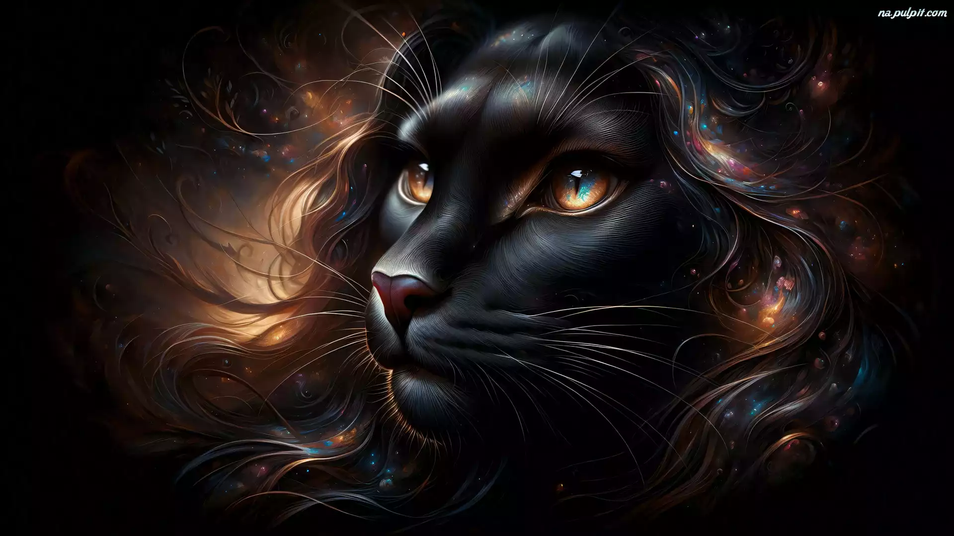 Czarny, Kot, Głowa, Fantasy Na Pulpit