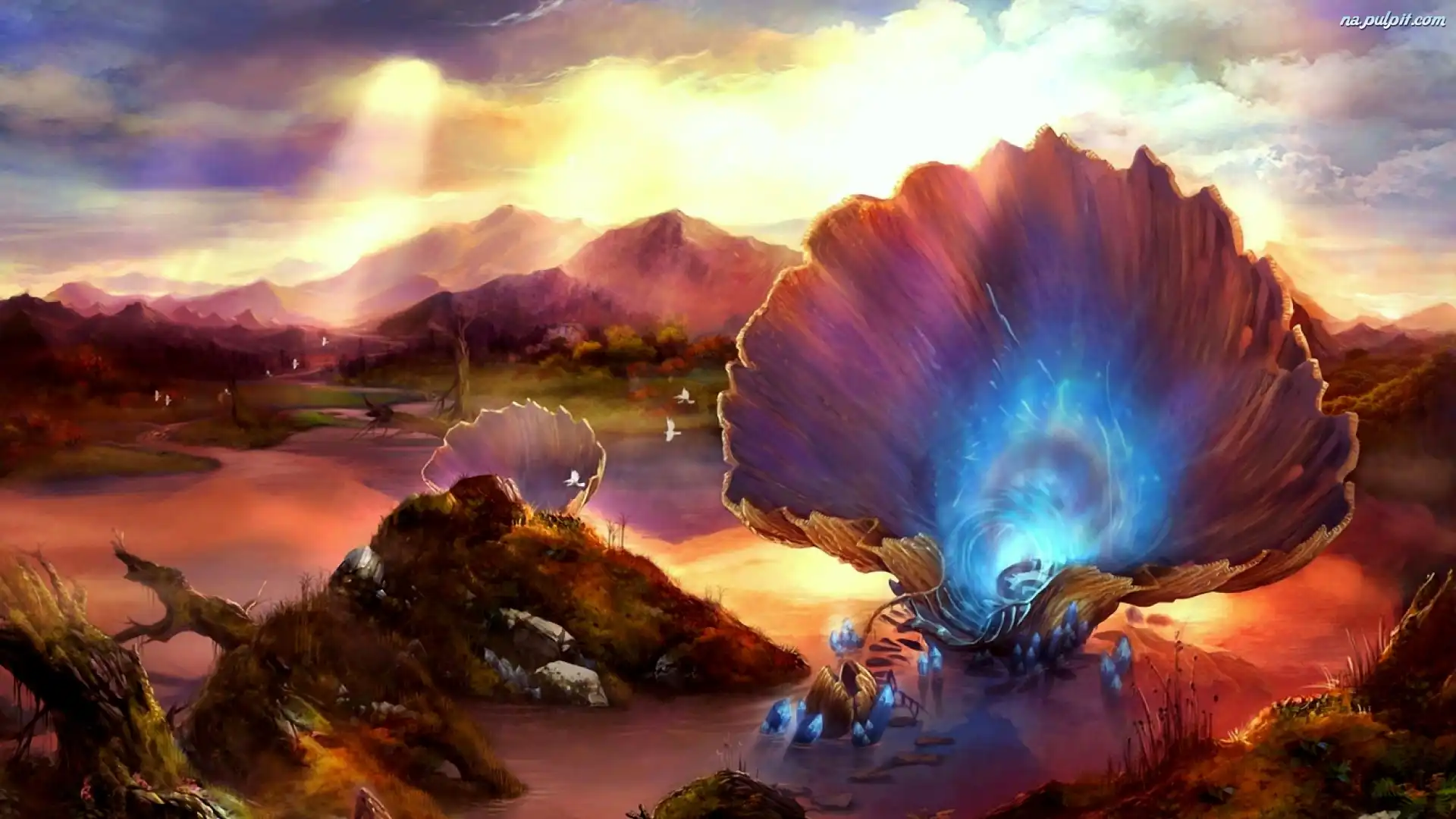 Fantasy, Światła, Krajobraz, Muszelki, Grafika, Kolorowe Na Pulpit
