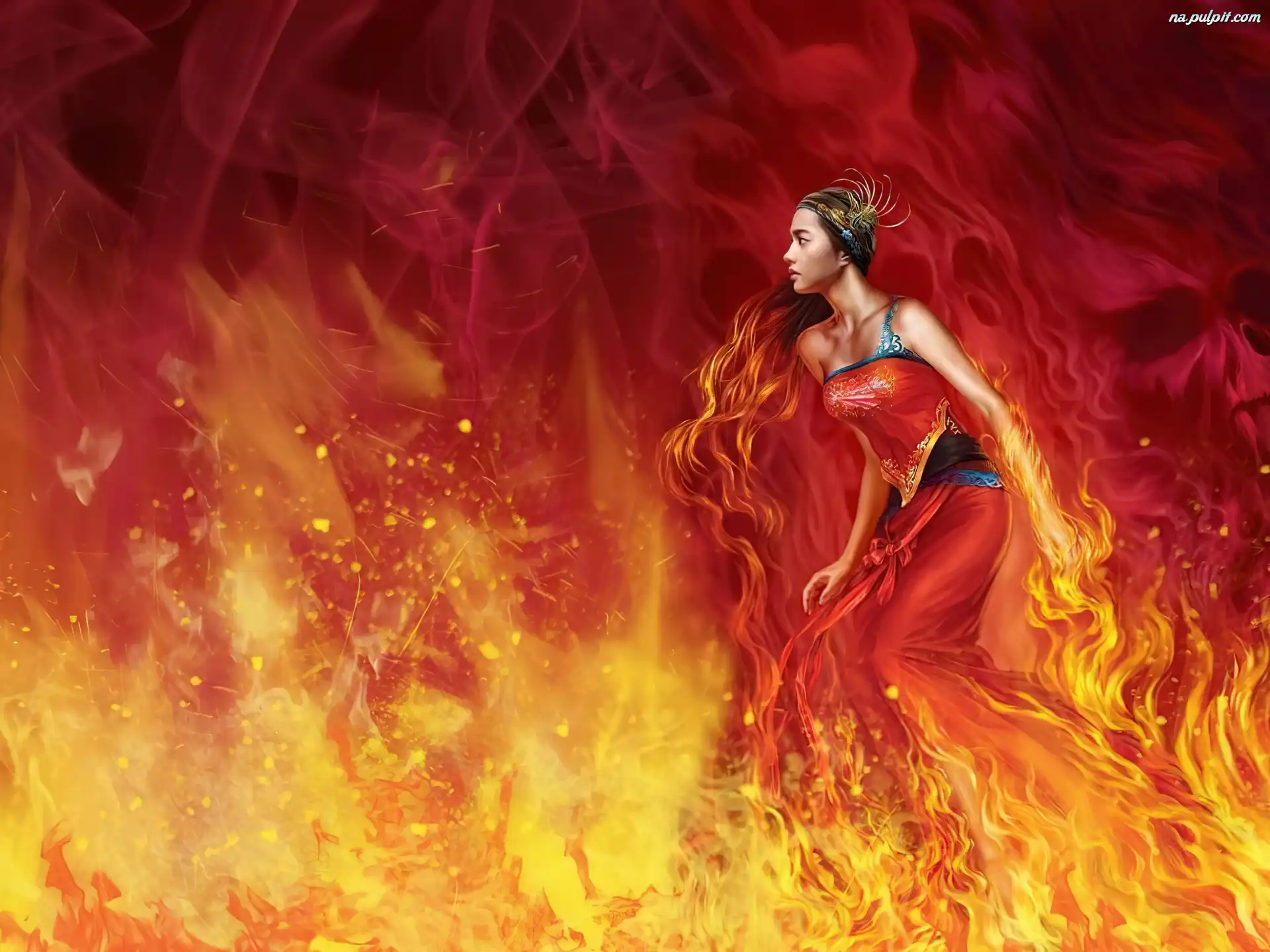 Fantasy, Płomienie, Kobieta, Ogień Na Pulpit