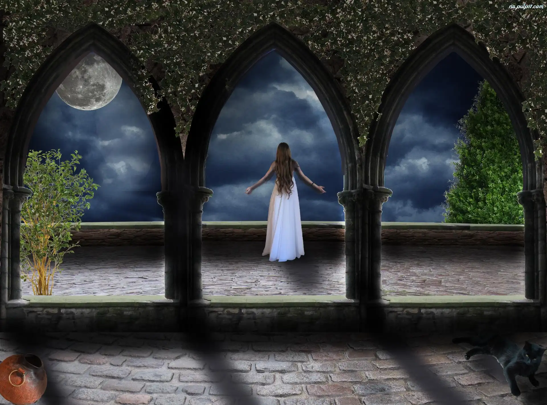Fantasy, Taras, Kobieta, Księżyc Na Pulpit