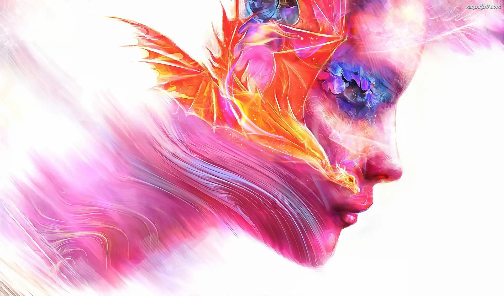 Fantasy, Smok, Twarz, Kobieta, Ogień