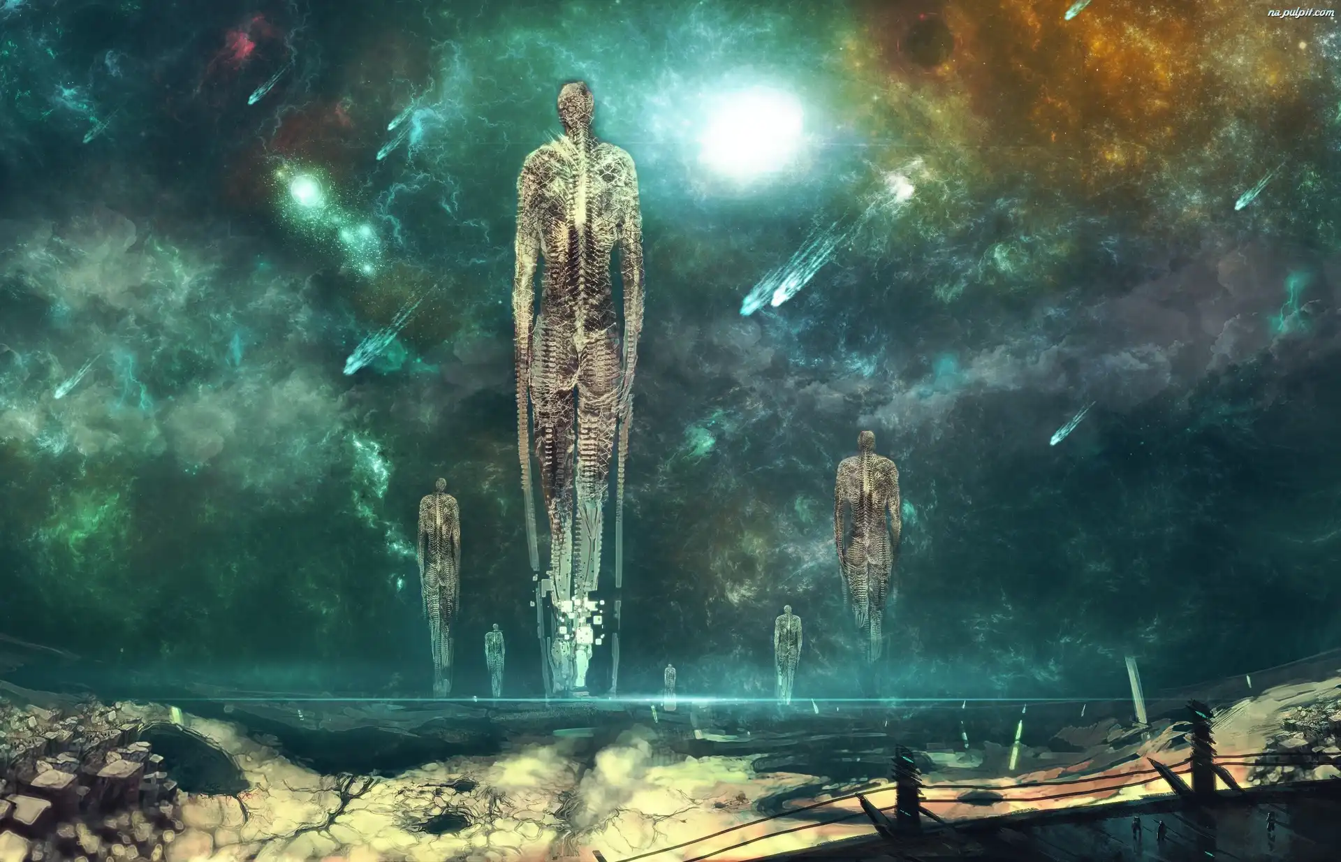 Fantasy, Kosmos, Ludzie, Szkielety